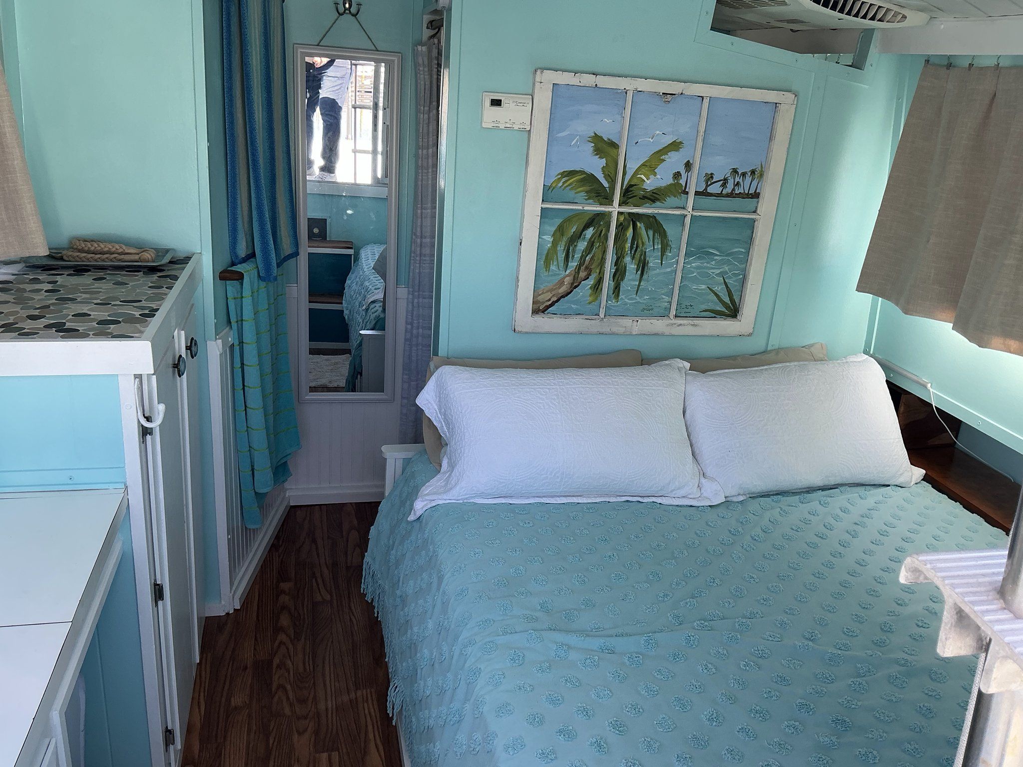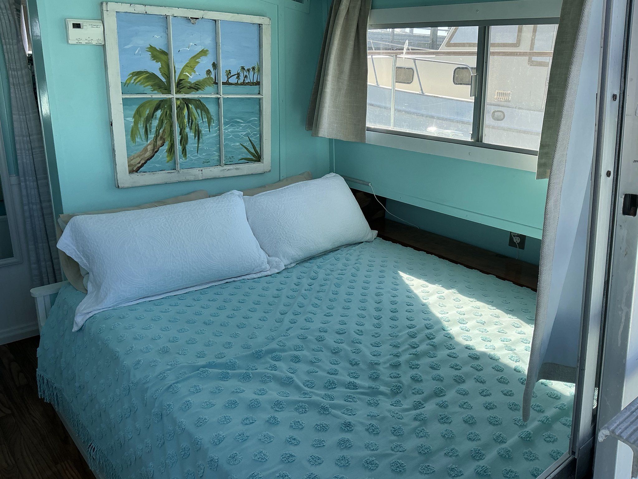 Stateroom(s): A private forward stateroom, with aft sleeping accommodations with full size berth with private aft exterior entrance.