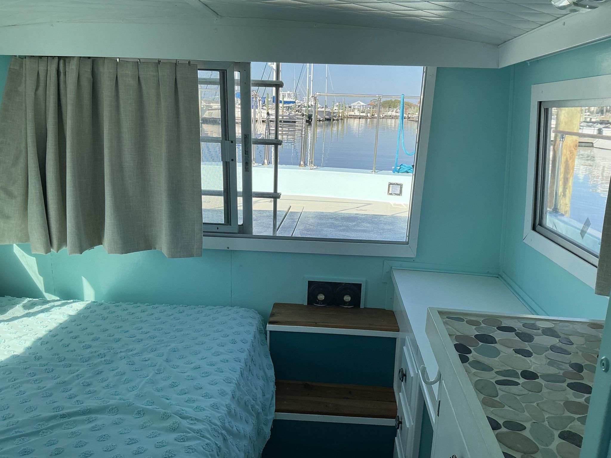 The layout is centered around maximizing usable living space while maintaining practical flow throughout the vessel. Overall, the layout delivers a true liveaboard platform, offering separation between living, cooking, and sleeping areas while maintaining an open, comfortable feel.