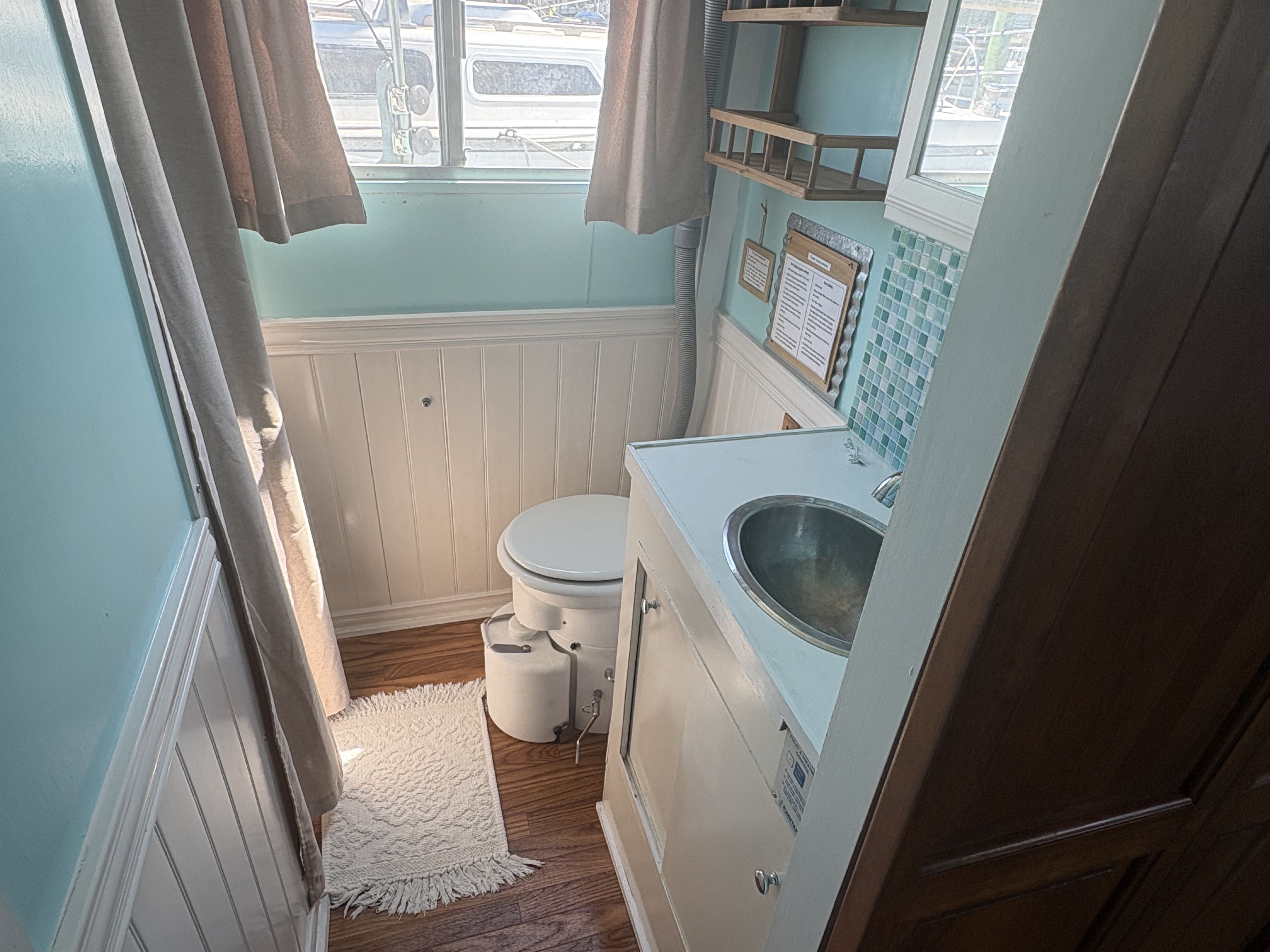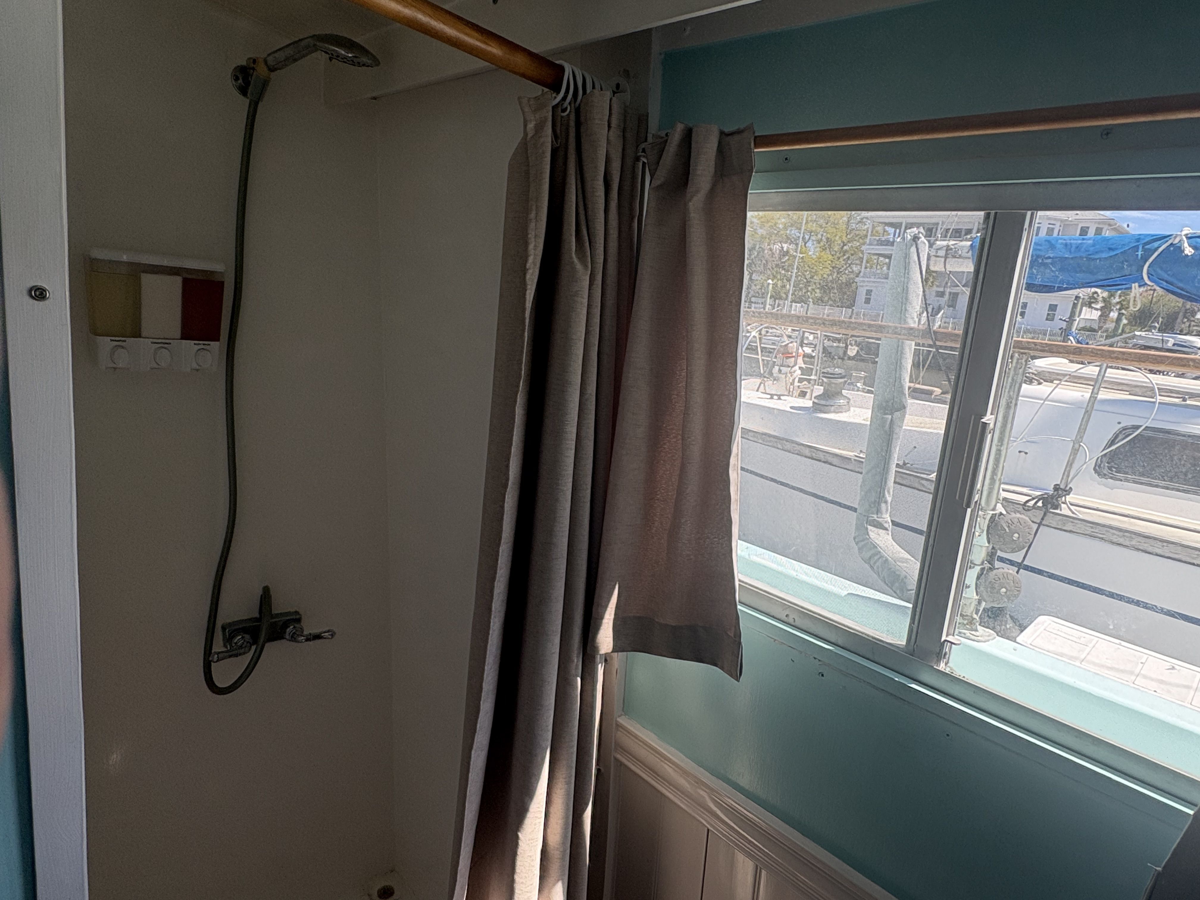 Head & Shower: An enclosed head with shower provides the functionality needed for cruising or live-aboard life.