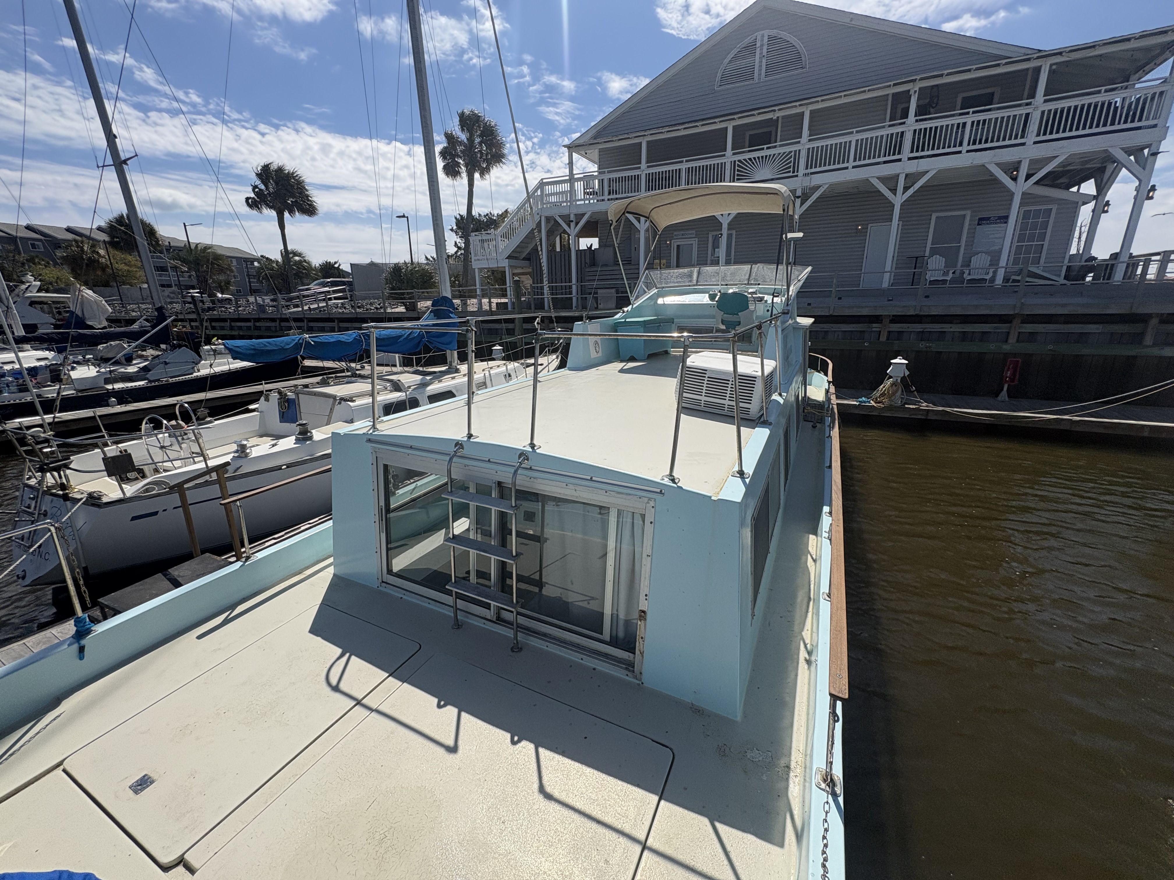 The 1972 Whitcraft Hatteras represents a rare and innovative collaboration between Whitcraft and Hatteras - two respected names in American boatbuilding - resulting in a true cruising houseboat with offshore capability. It’s a unique and seldom-seen collaboration that blends the livability of a traditional houseboat with the seaworthiness of a true cruising hull. Built on a solid fiberglass modified deep-V platform, this vessel offers capabilities well beyond typical inland houseboats - making it an ideal choice for buyers seeking comfort without sacrificing mobility.