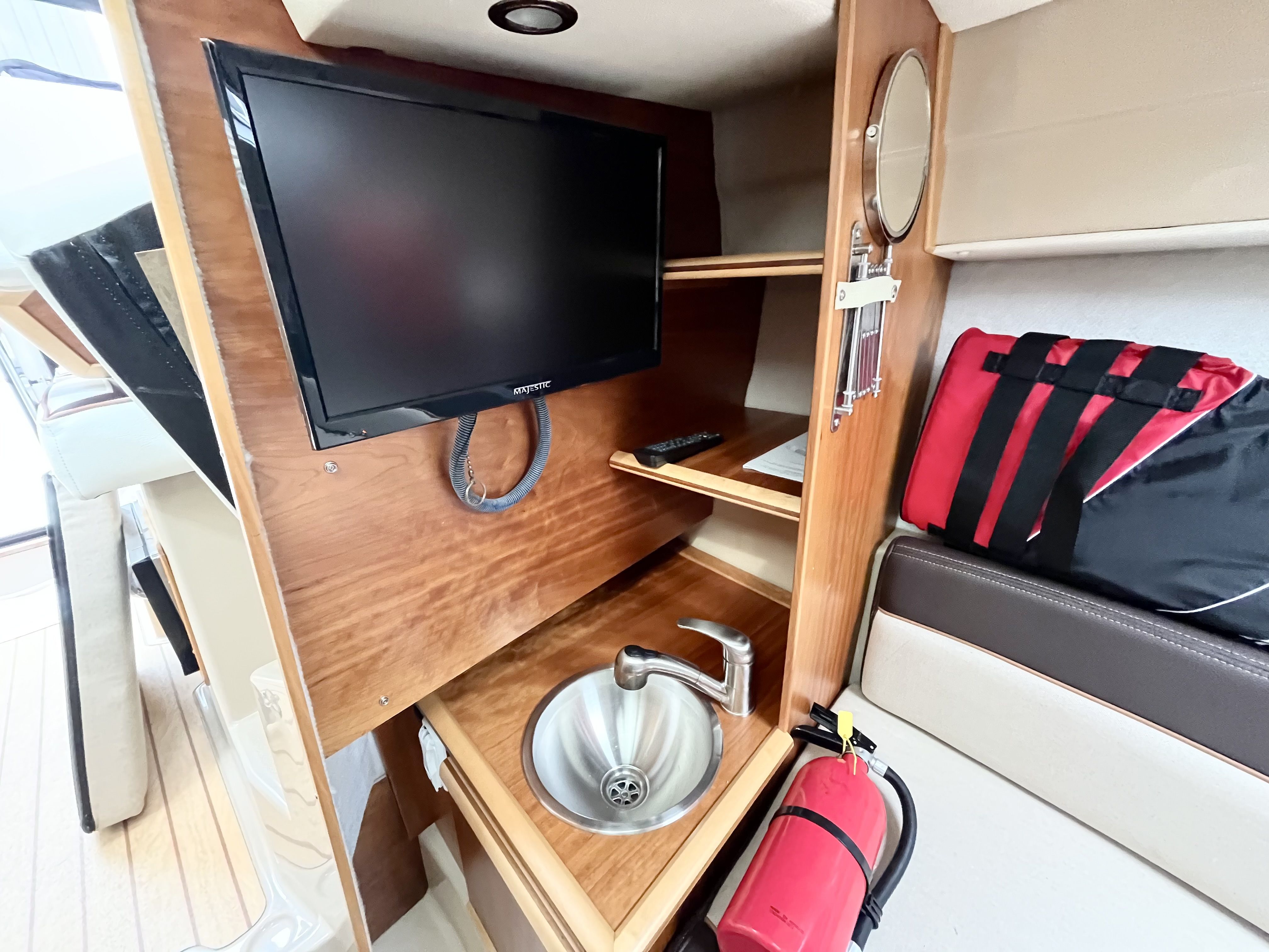 The Cutwater C-24 pairs a nimble, trailer-friendly layout with a powerful 300HP Yamaha outboard, giving it quick acceleration and confident handling in a wide range of conditions. Its smart cockpit design and generous swim platform make it equally suited for fishing, entertaining, or watersports. Below deck, the thoughtfully arranged cabin includes comfortable sleeping space and practical amenities, making it a capable compact cruiser for weekend getaways