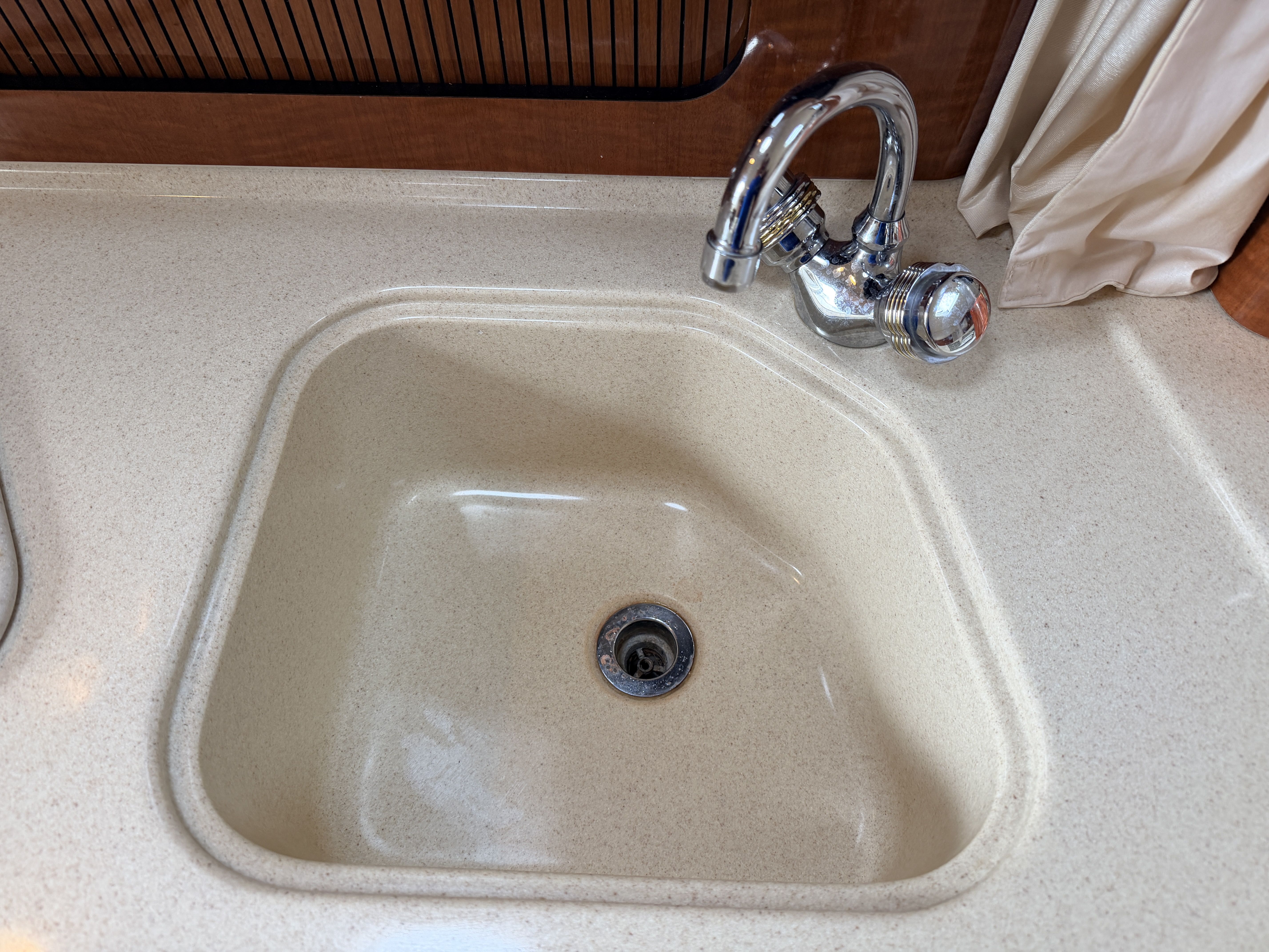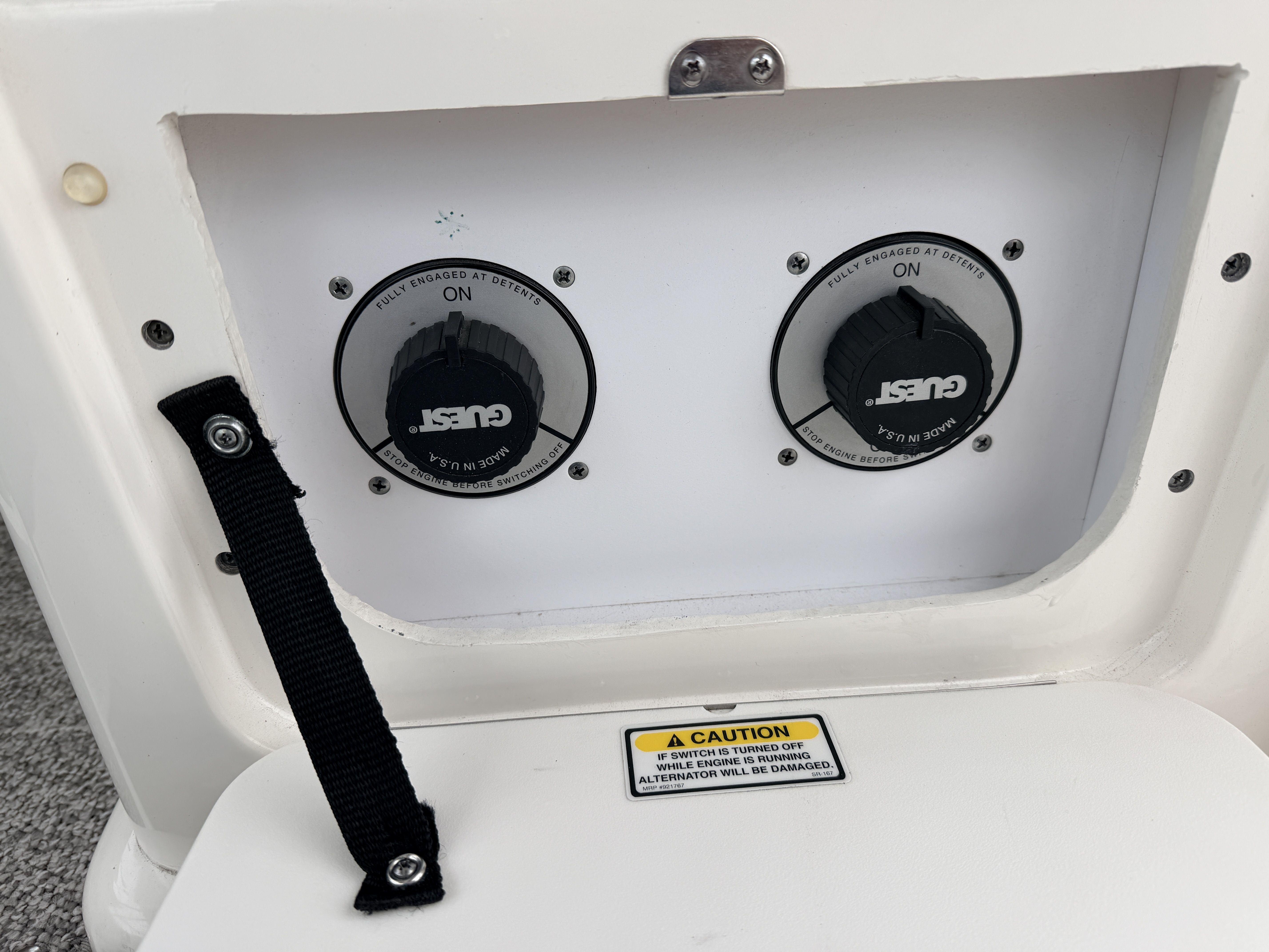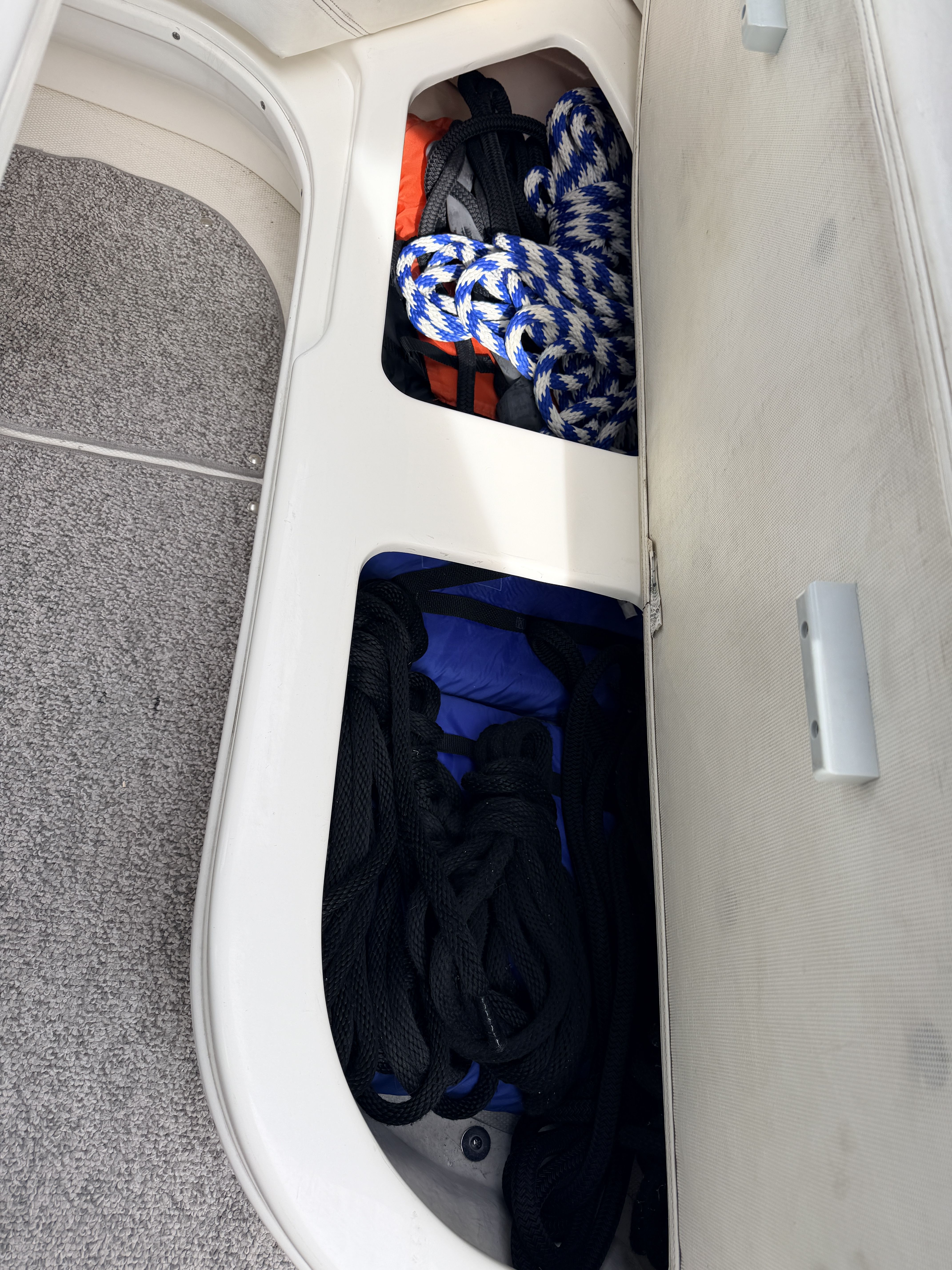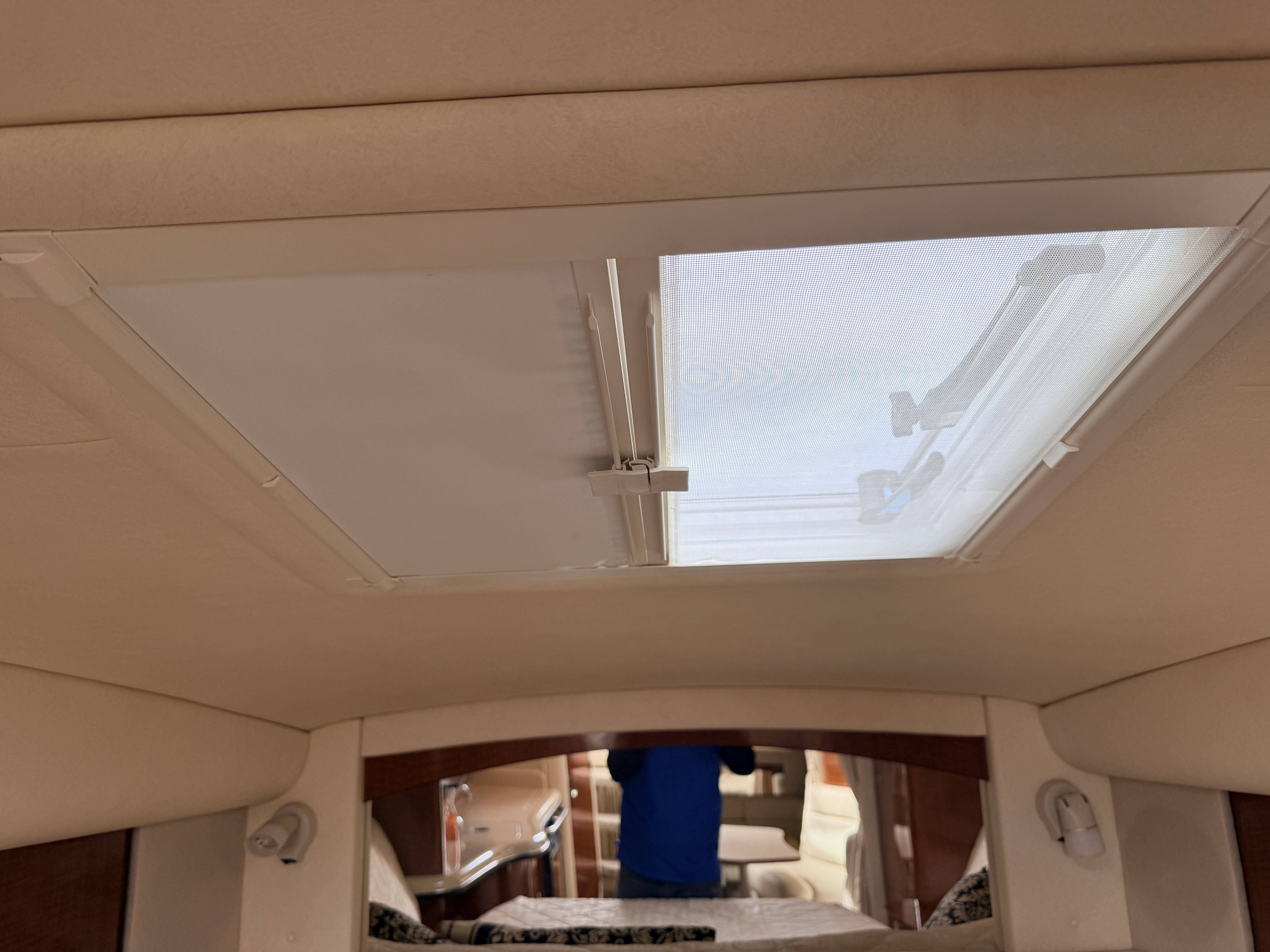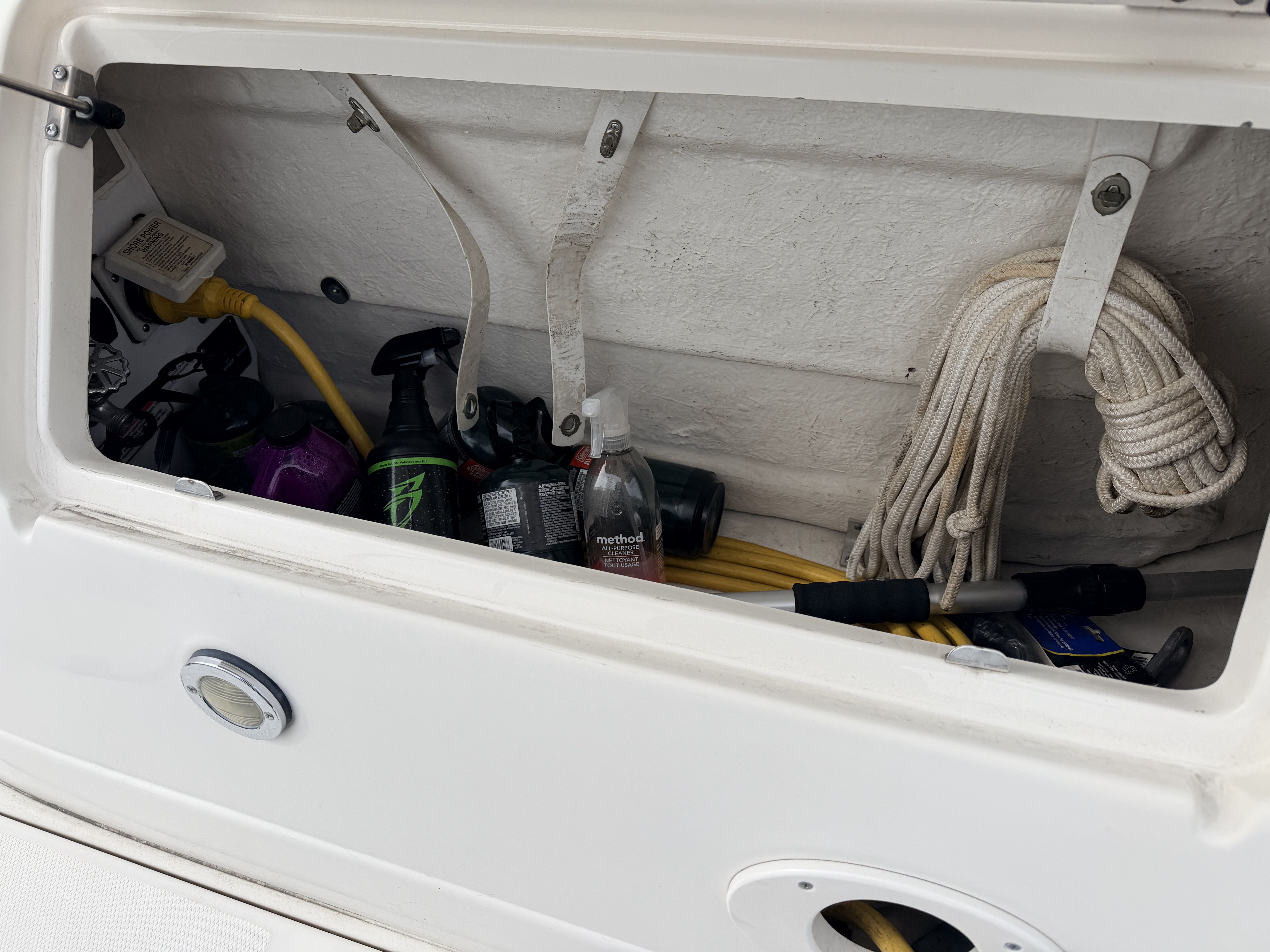 Featuring a striking black stripe down the sides and a sleek profile, this Sundancer stands out both in the marina and on the water. Full Enclosure, enhancing your onboard comfort during the shoulder seasons. Powered by a reliable engine paired with a Kohler generator, extended trips and onboard amenities are effortlessly supported.