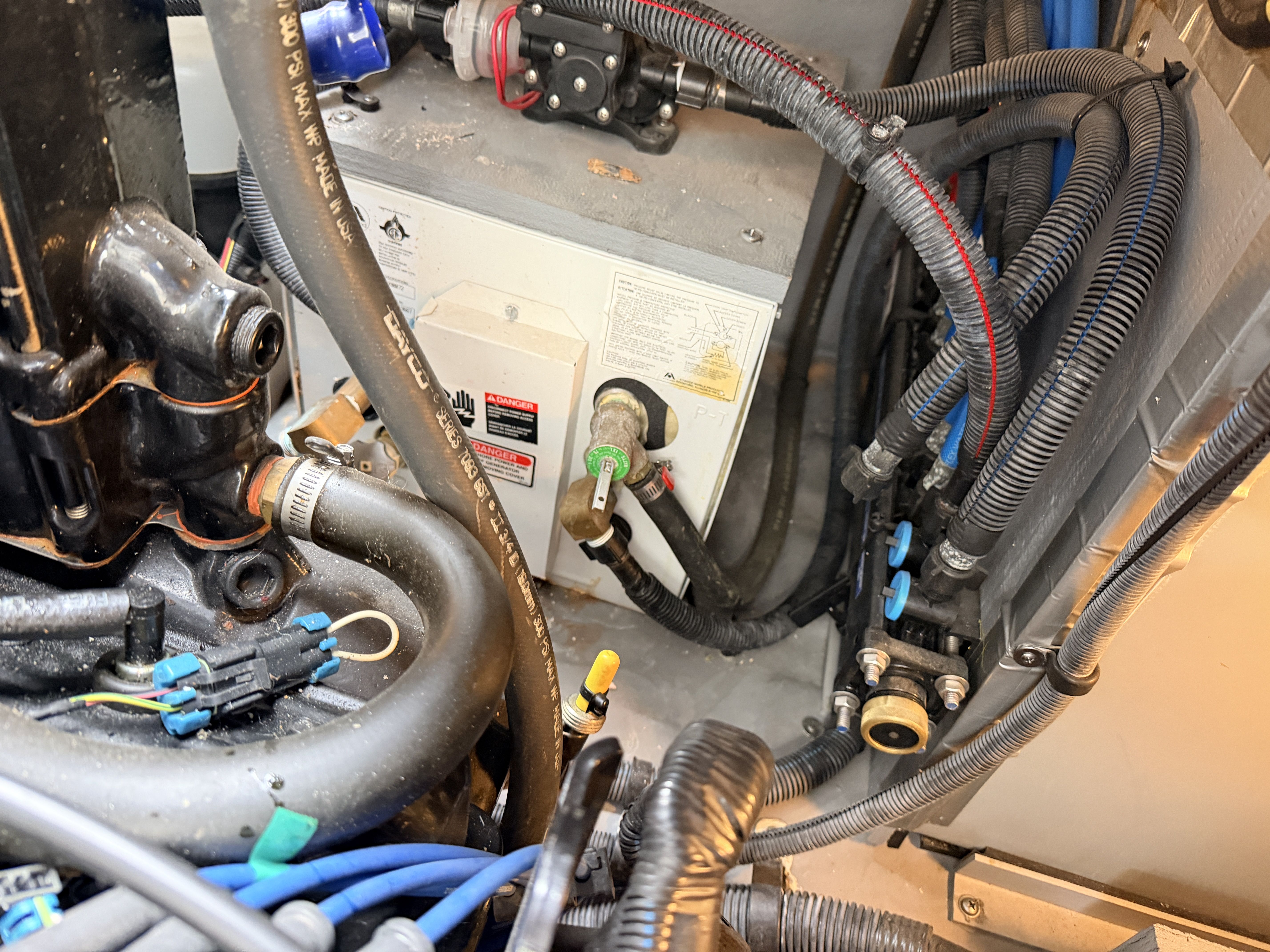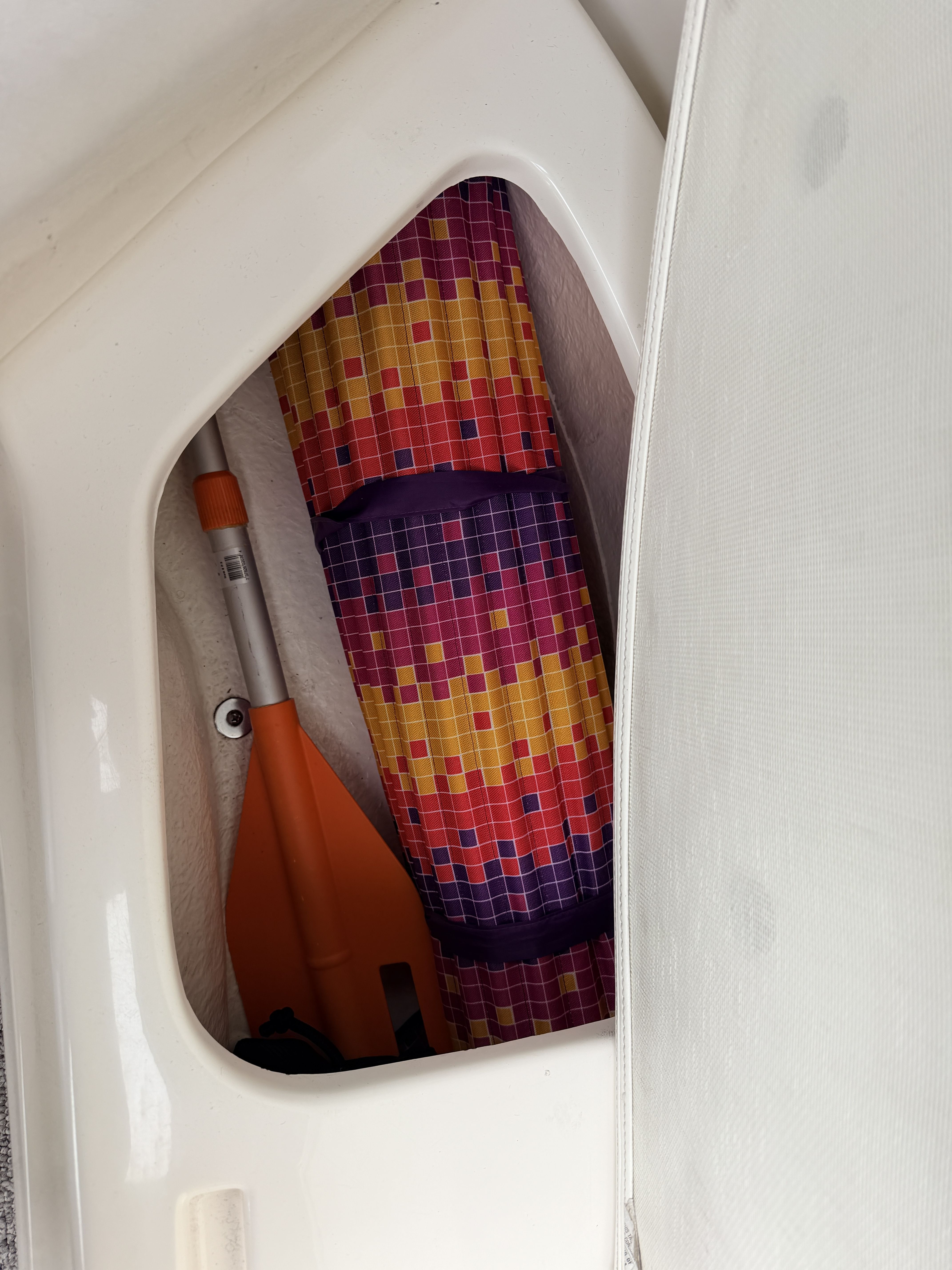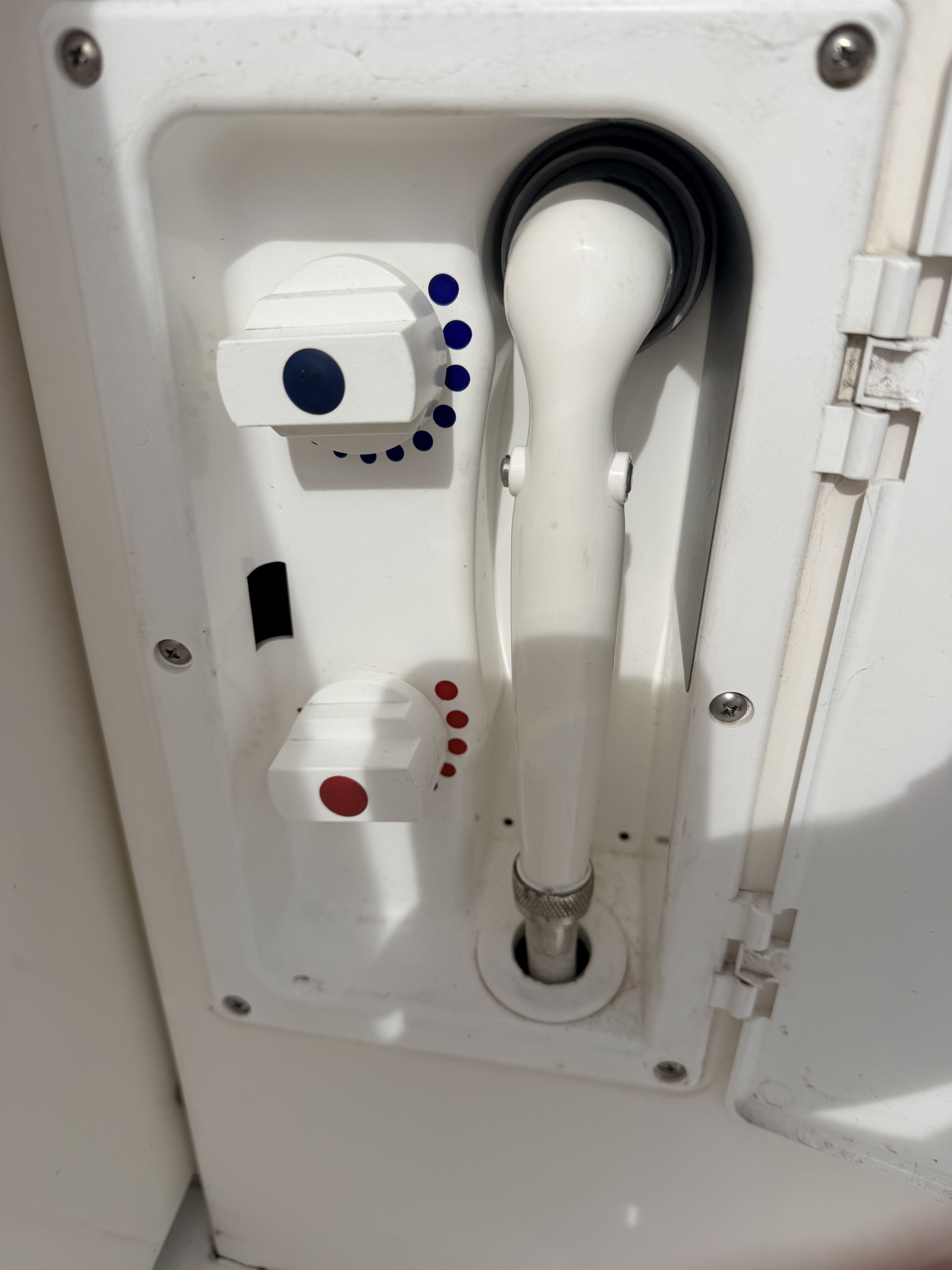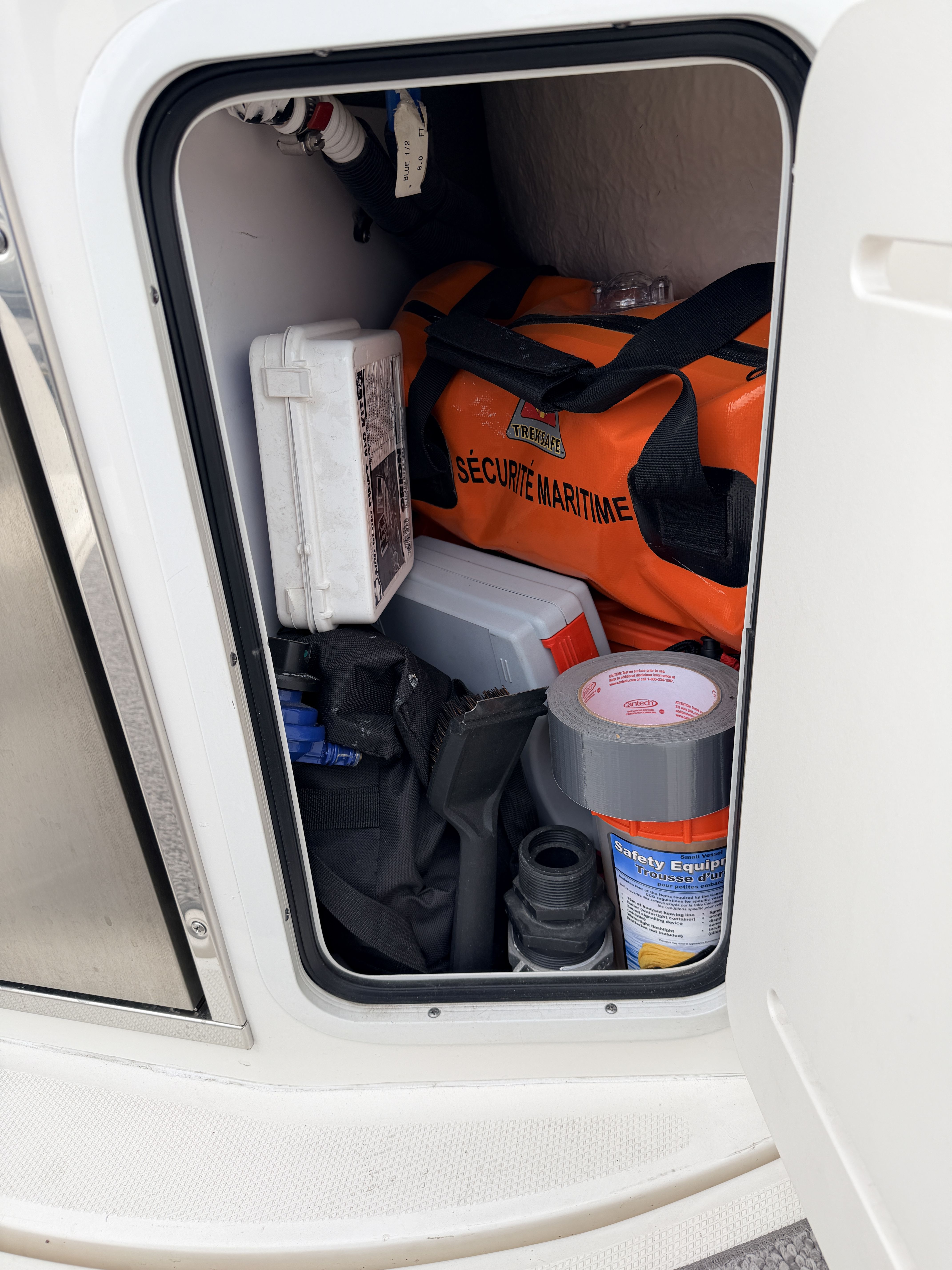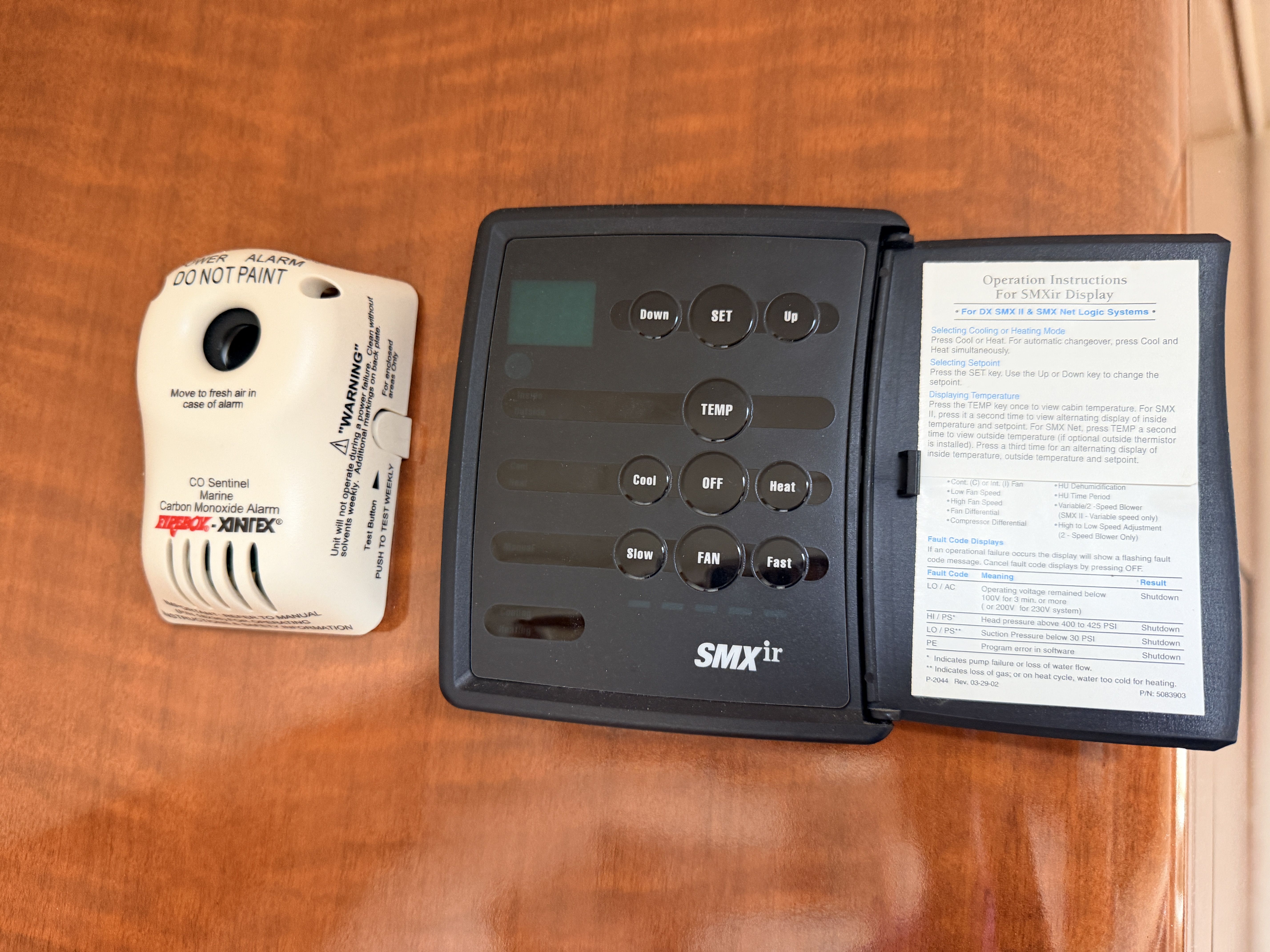 Featuring a striking black stripe down the sides and a sleek profile, this Sundancer stands out both in the marina and on the water. Full Enclosure, enhancing your onboard comfort during the shoulder seasons. Powered by a reliable engine paired with a Kohler generator, extended trips and onboard amenities are effortlessly supported.