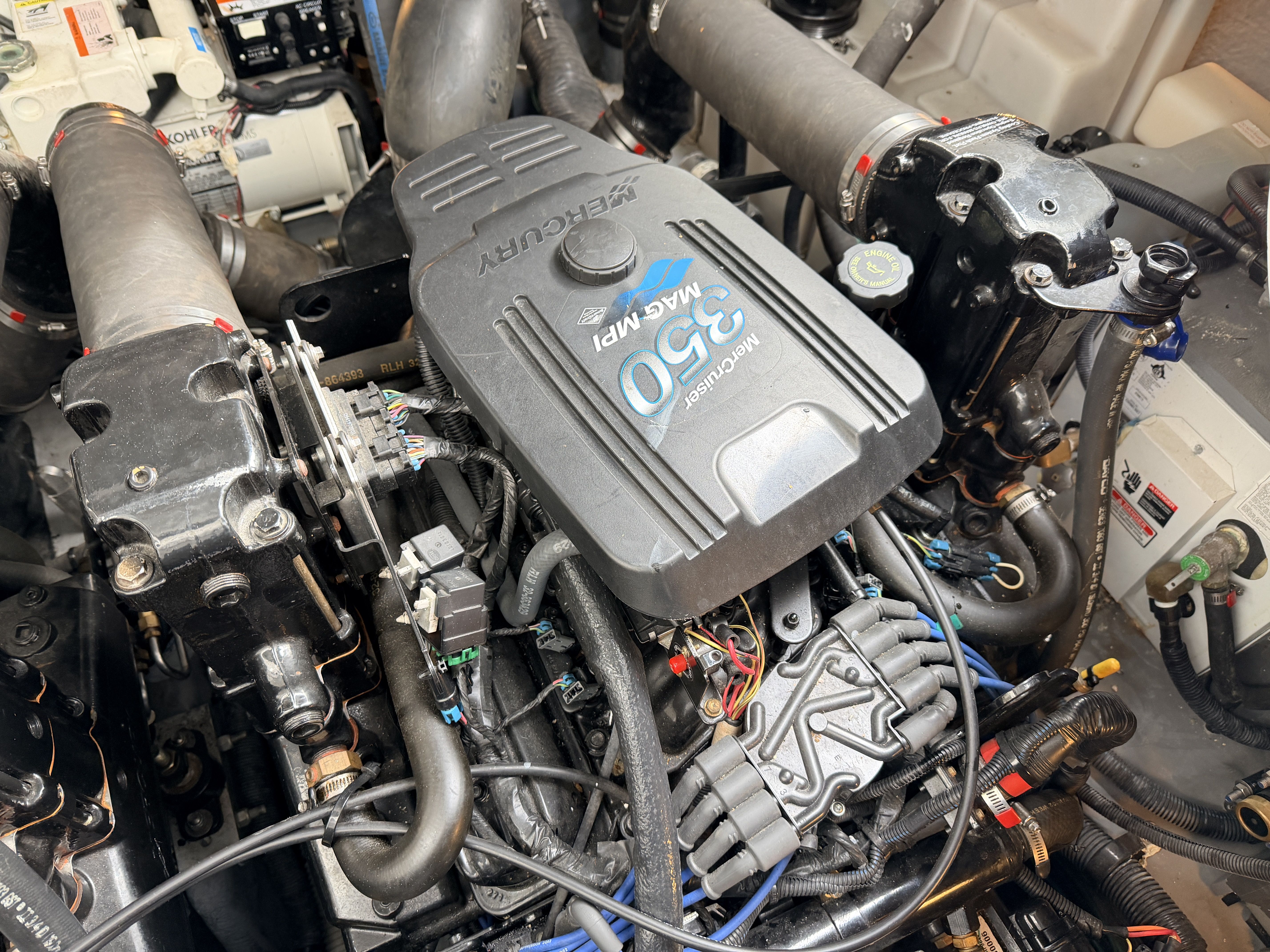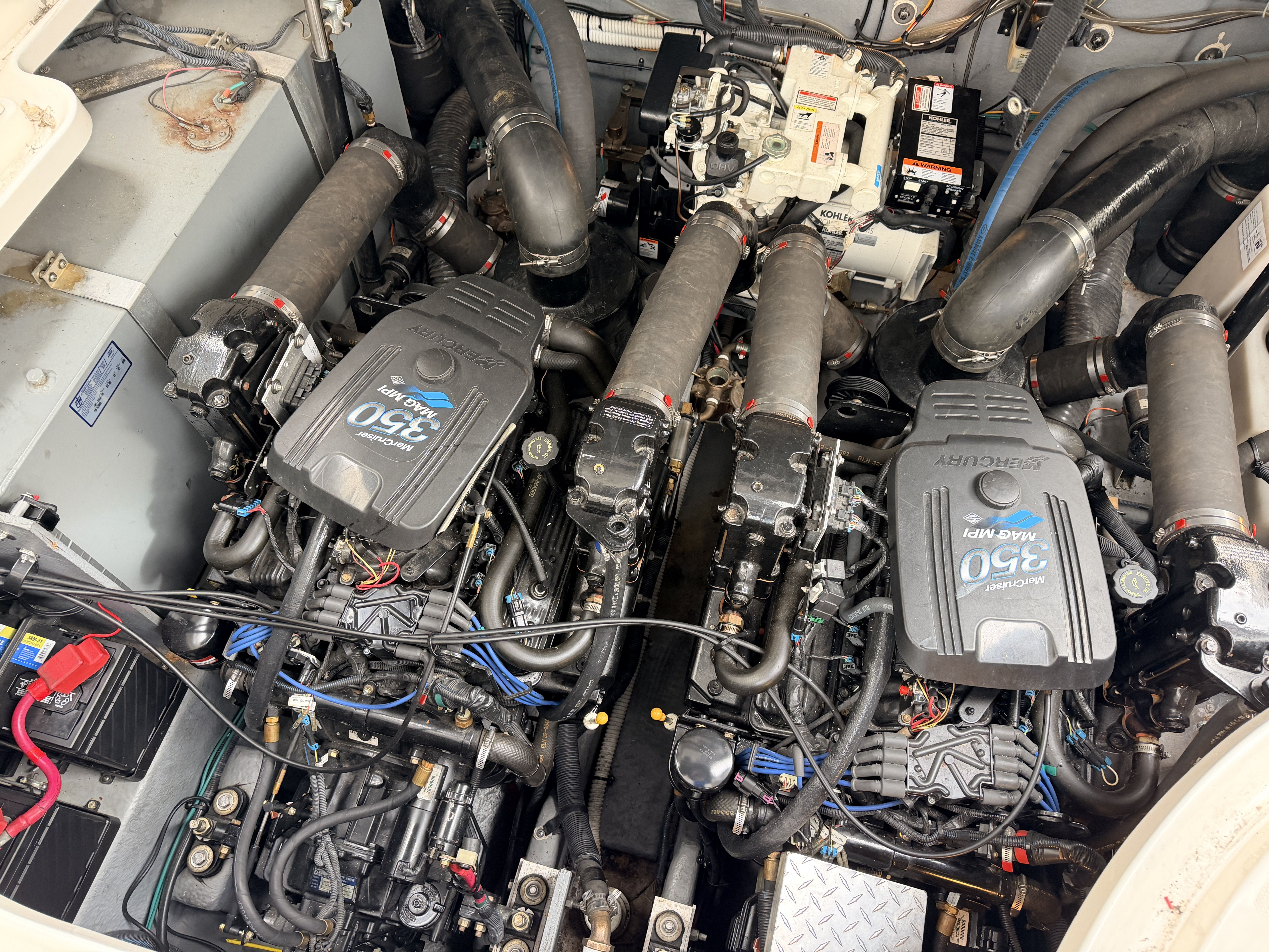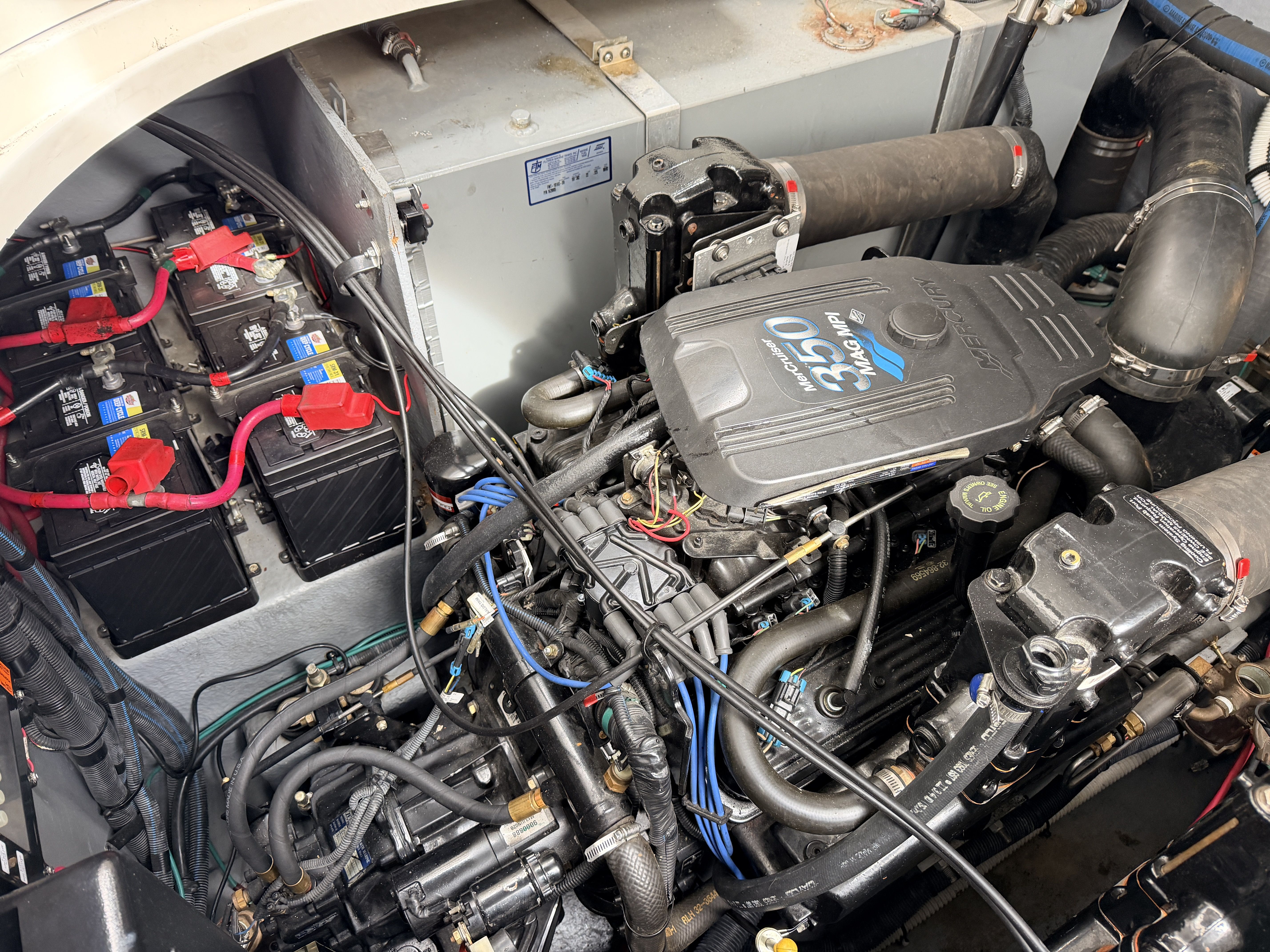 FRESHWATER - LOW HOURS - TWIN 350 MAG MERCRUISER ENGINES - 600HP - V-DRIVE - FULL ENCLOSURE - GENERATOR - EXCELLENT LAYOUT - POPULAR MODEL - COMFORTABLE CABIN - HEAT & AC - WILL BE POLISHED AND DETAILED IN THE SPRING