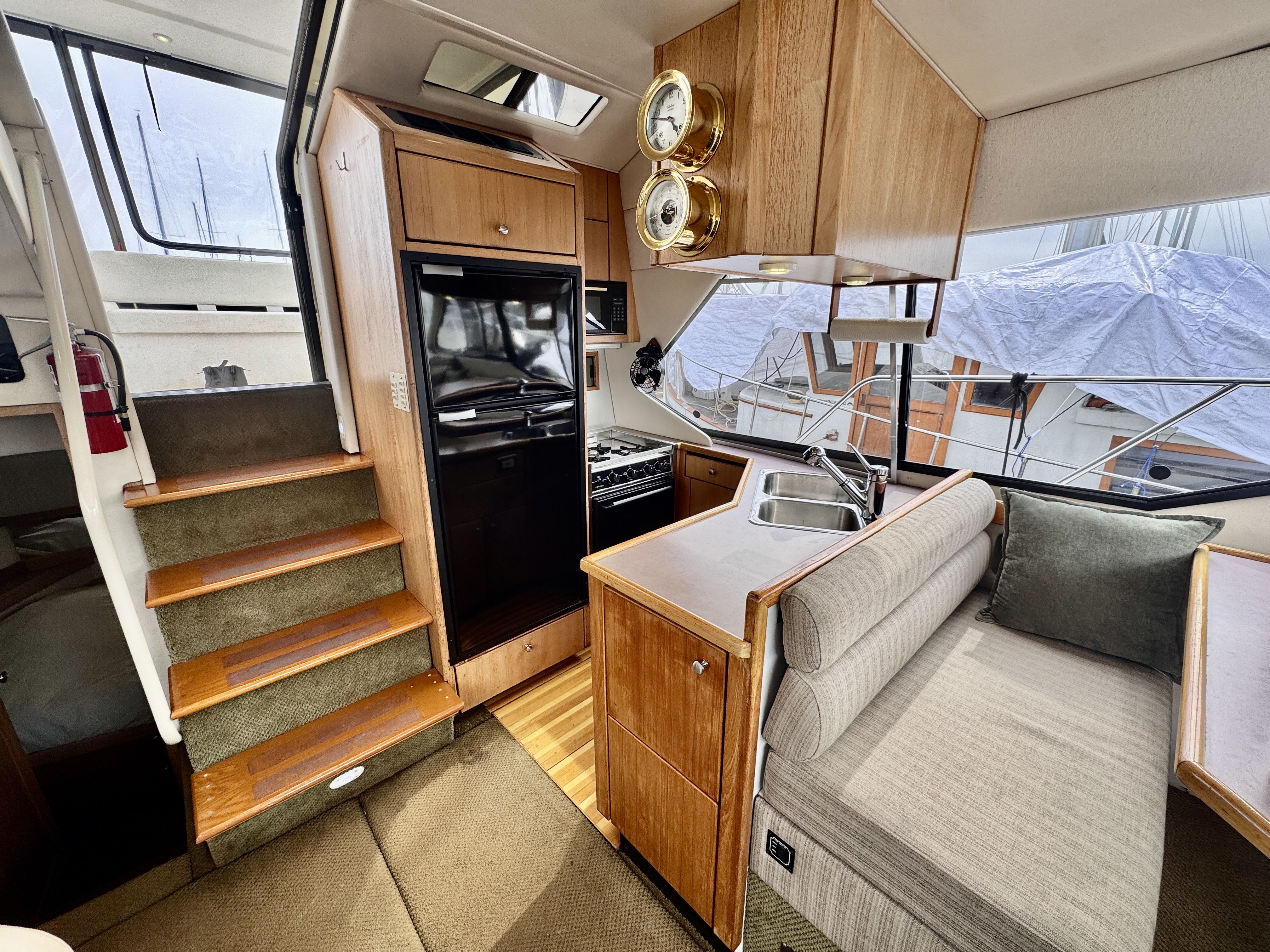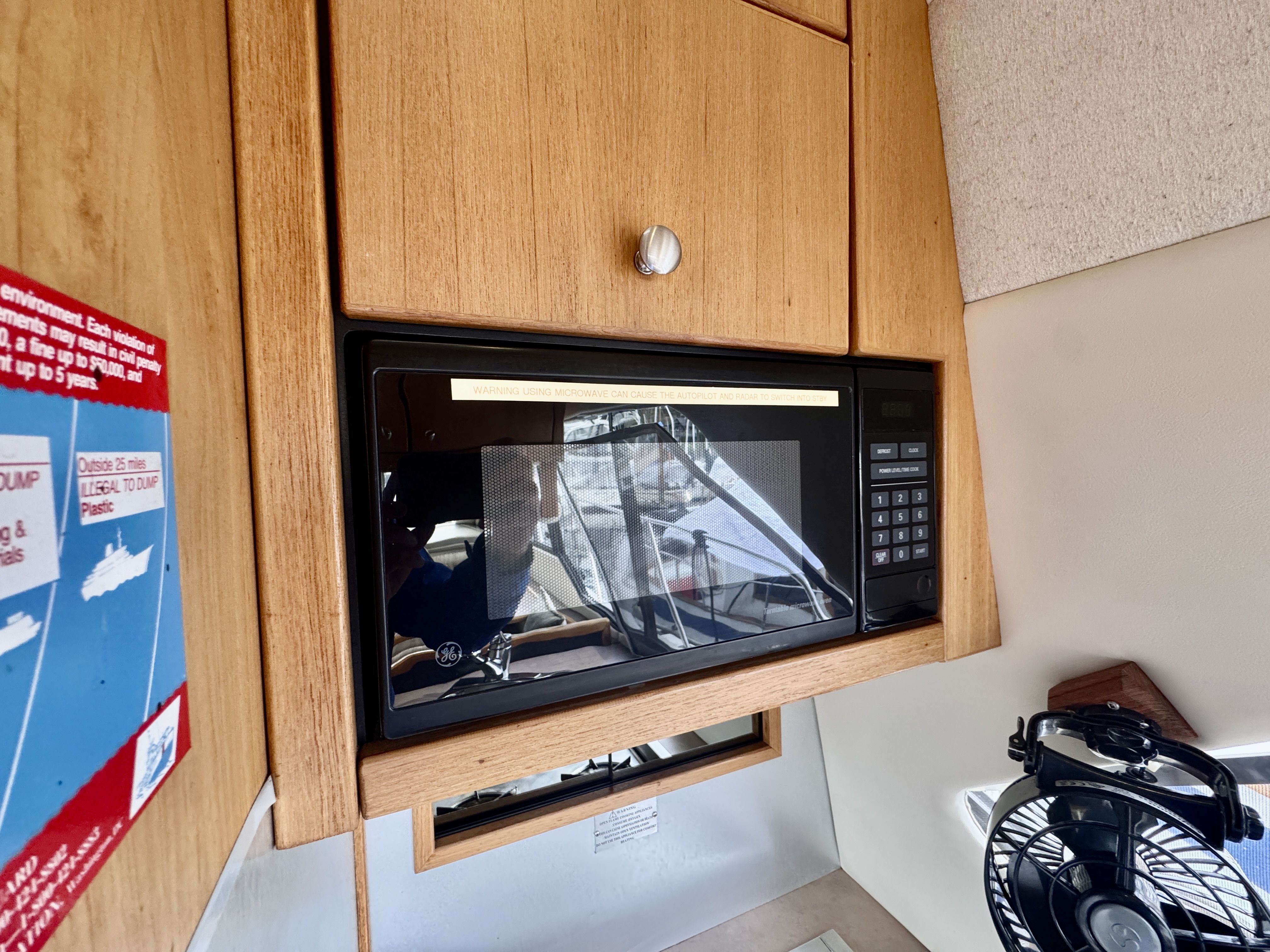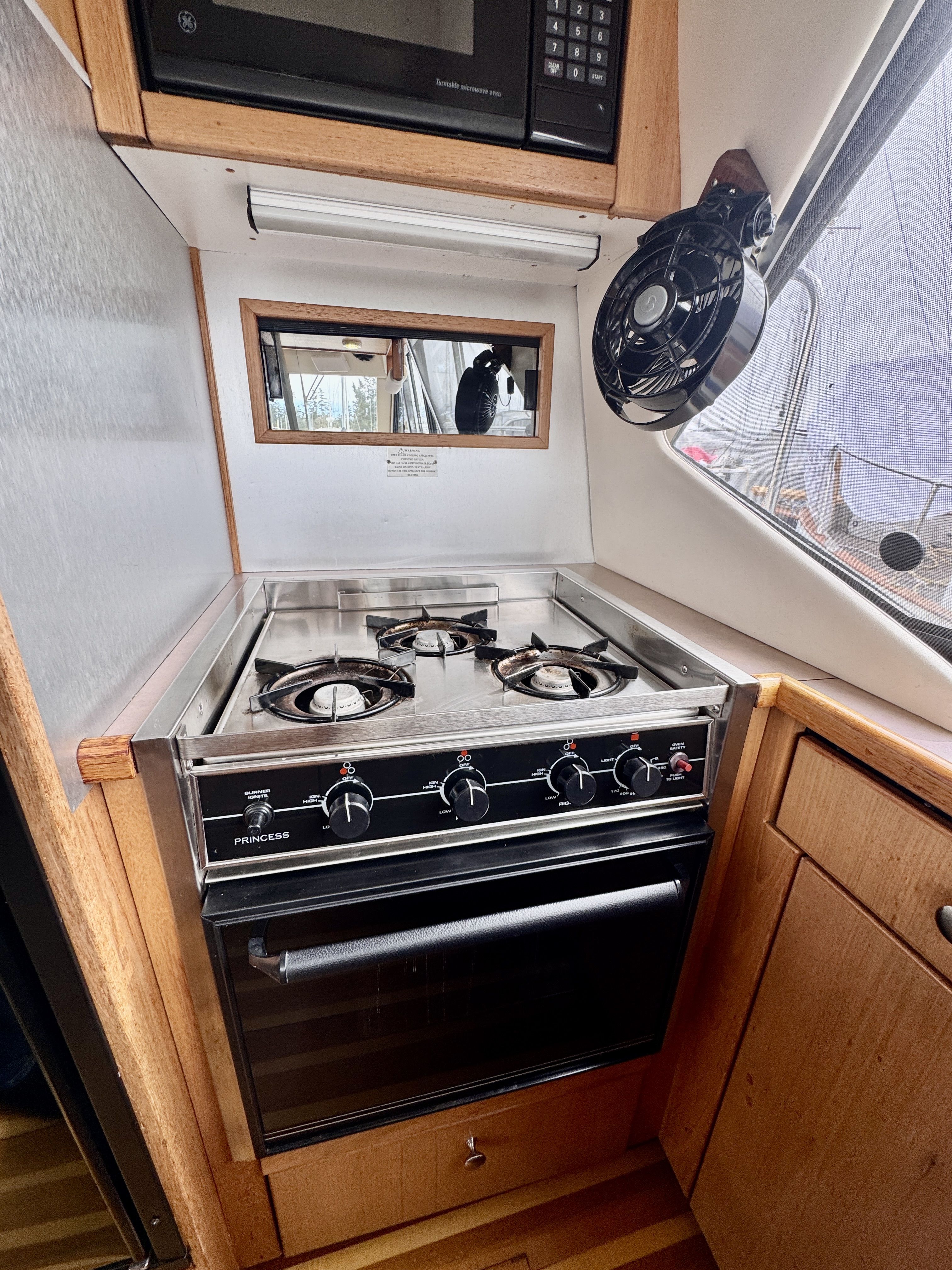 - A well-equipped galley with everything you need to cook up fresh-caught crab or a cozy meal at anchor
