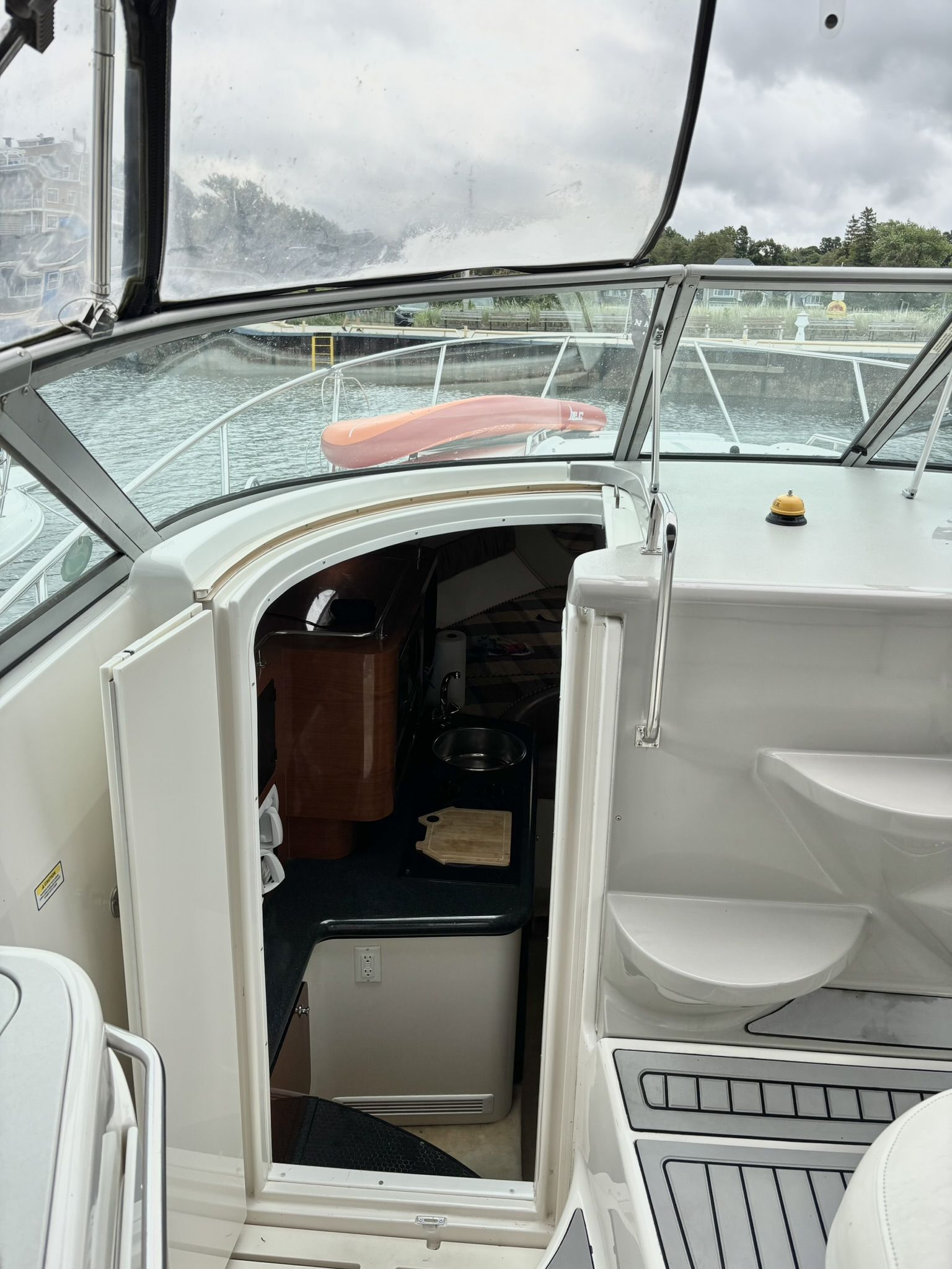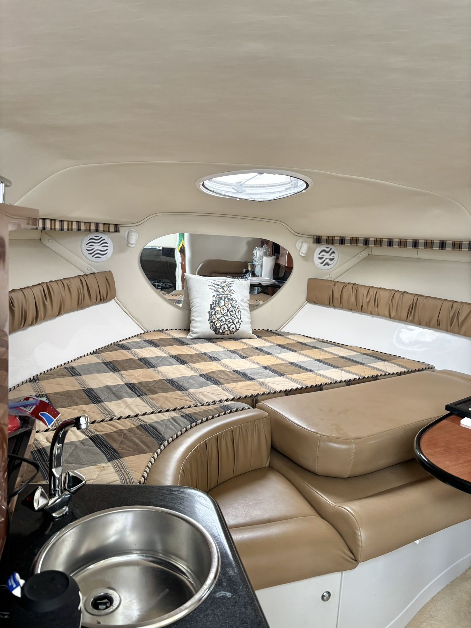 The 2004 Monterey 282 Cruiser (282CR) is a versatile express cruiser designed for comfortable weekend cruising and entertaining. At 28 feet, it offers a spacious cockpit with ample seating, wet bar, and helm ergonomics suited for extended time underway. Below deck, the layout is well-appointed with a convertible forward dinette, mid-cabin berth, enclosed head with shower, and a functional galley, making it ideal for overnighting. This is powered by twin gasoline sterndrives (MerCruiser), delivering reliable performance and maneuverability. With its wide beam and deep-V hull, the 282CR provides a stable ride and generous interior volume for its class Monterey designed the 282CR with a highly social cockpit layout, combining flexible seating, a wet bar, and easy water access via the integrated swim platform—making it ideal for entertaining and family cruising.