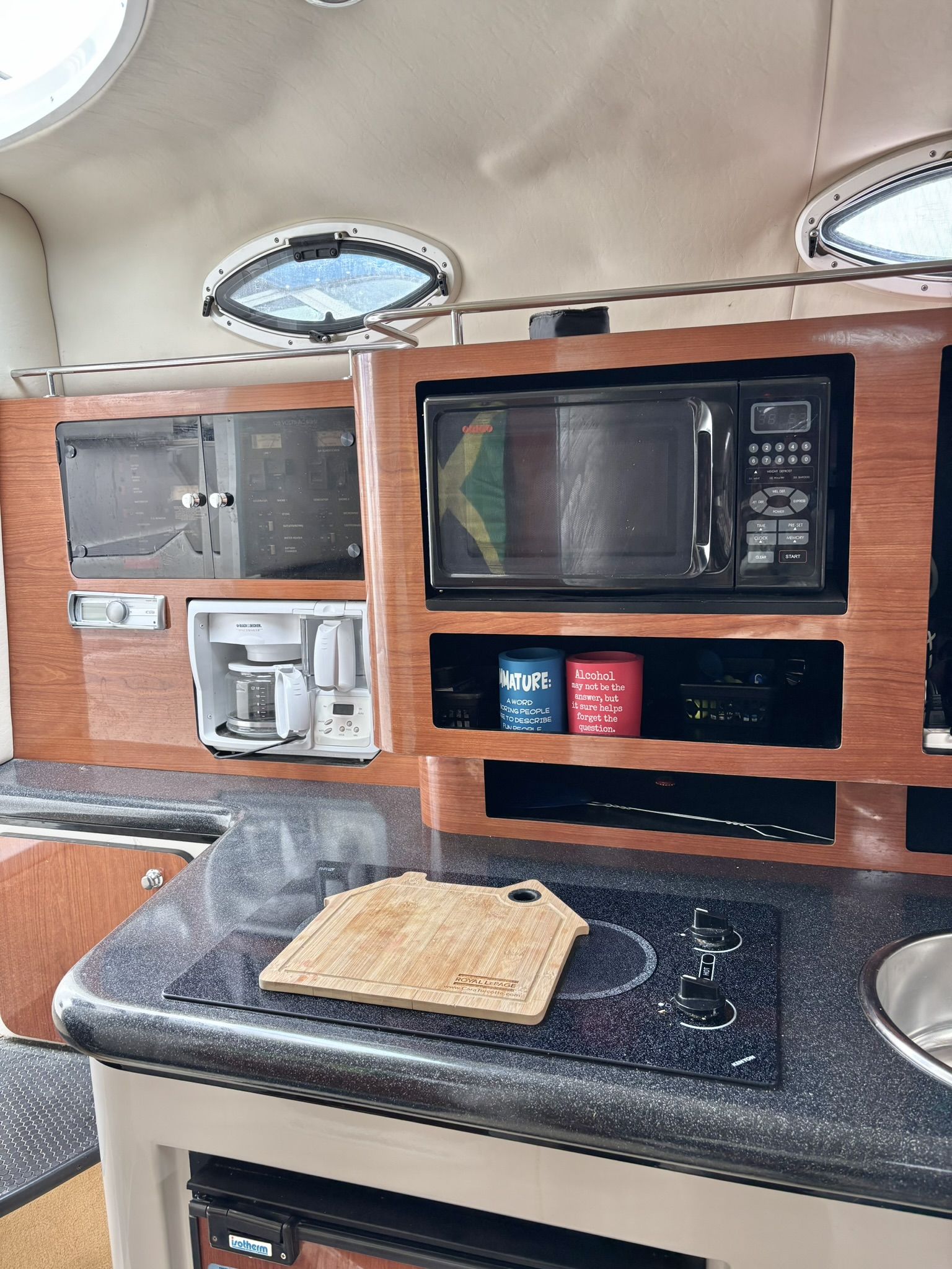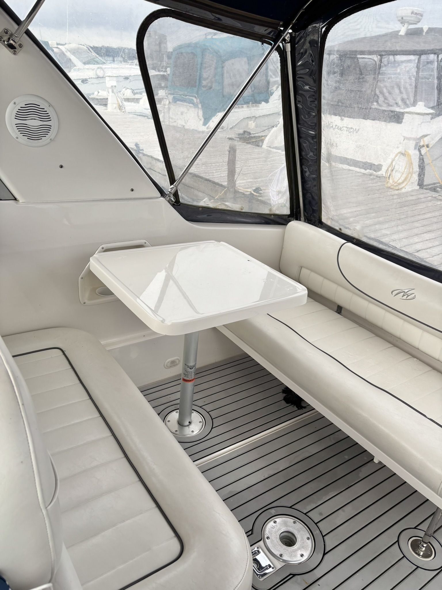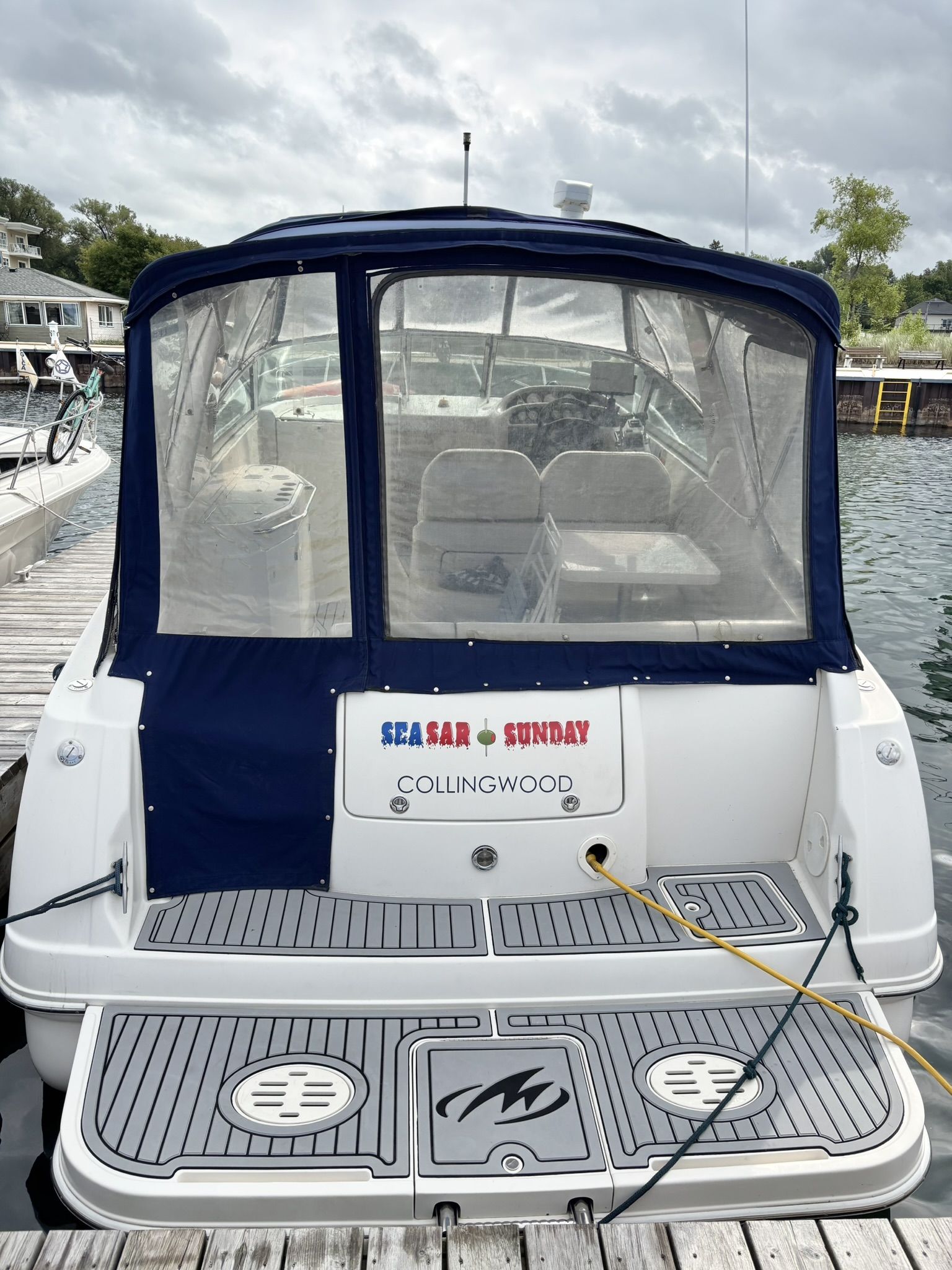 Although this boat has been very lightly used, the owner of this boat conducted any and all maintenance as needed and as a preventative maintenance measure - showing true pride of ownership. All of that maintenance including winterization, oil changes and more has all been completed by professional mechanics. The boat has always been shrink wrapped for proper winter storage. The canvas is in good condition. The propaane BBQ and all powers cords are included!