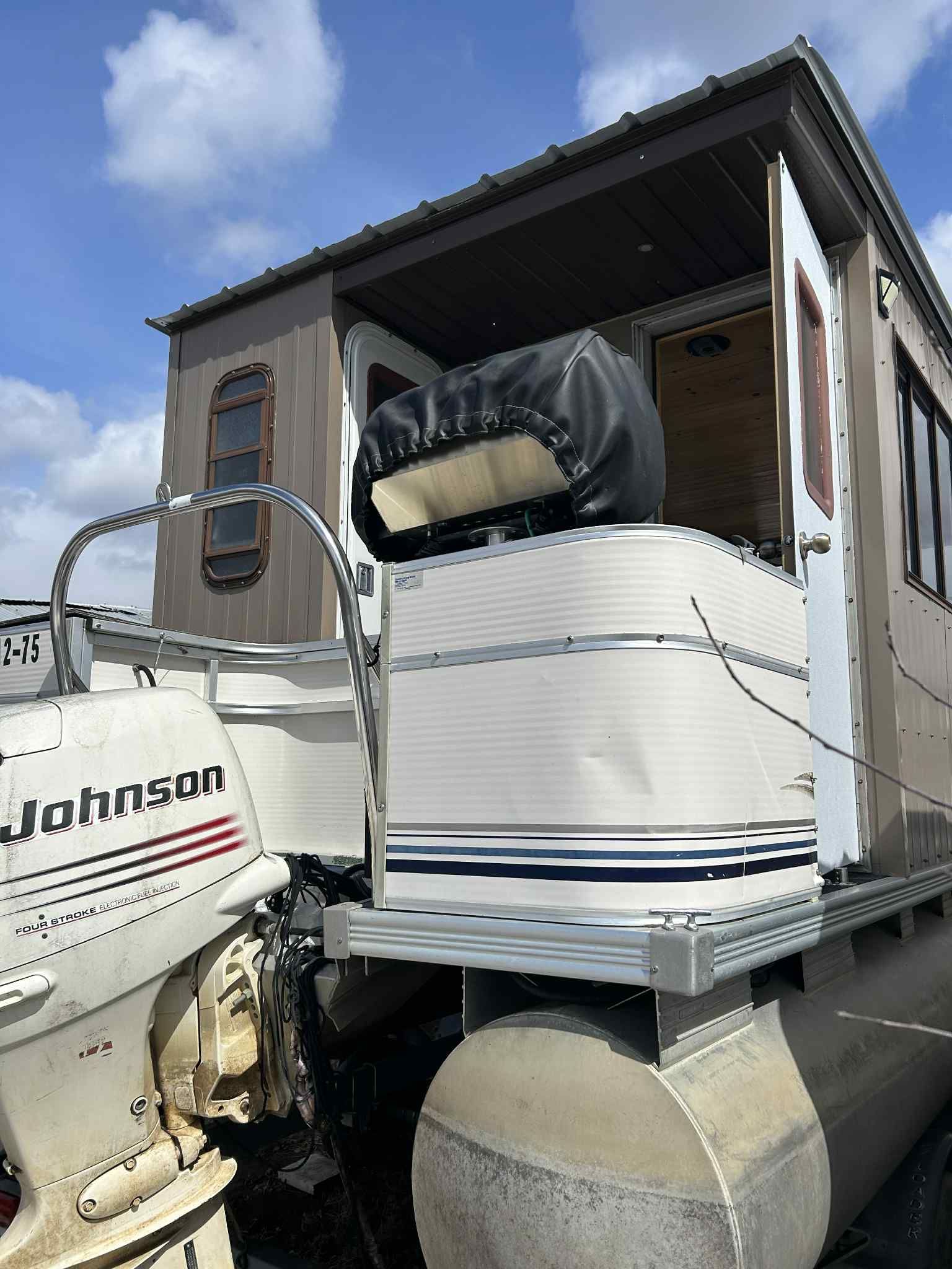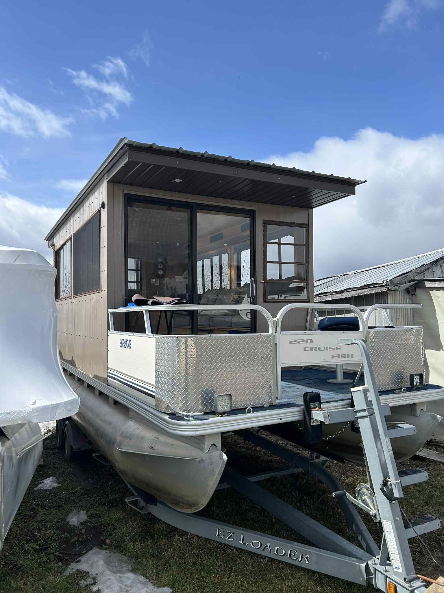 This specific model is a clever hybrid of reliability and modern comfort. While the durable 22-foot aluminum pontoons date to 1990, the entire house and cabin portion was custom-built in 2019, offering a fresh, contemporary interior that feels like a modern condo. Measuring 15 feet in length, the cabin is powered by a reliable 2003 Johnson 90hp outboard, providing more than enough thrust for comfortable cruising. The package is completed by a 2008 trailer, which was fully serviced and repaired in 2024, making this a truly "go-anywhere" waterfront retreat.