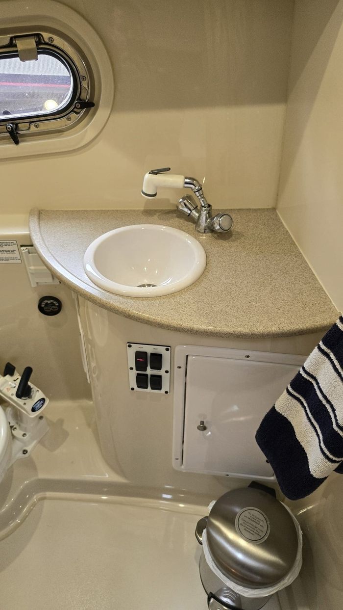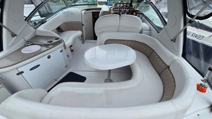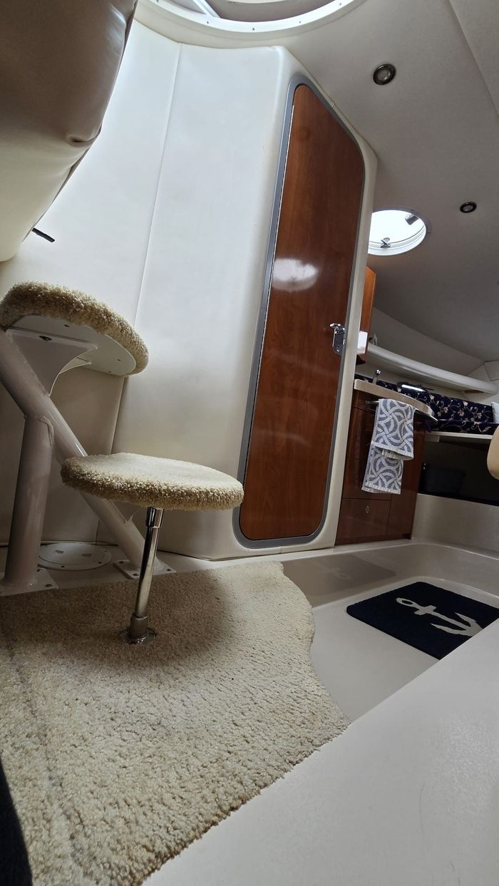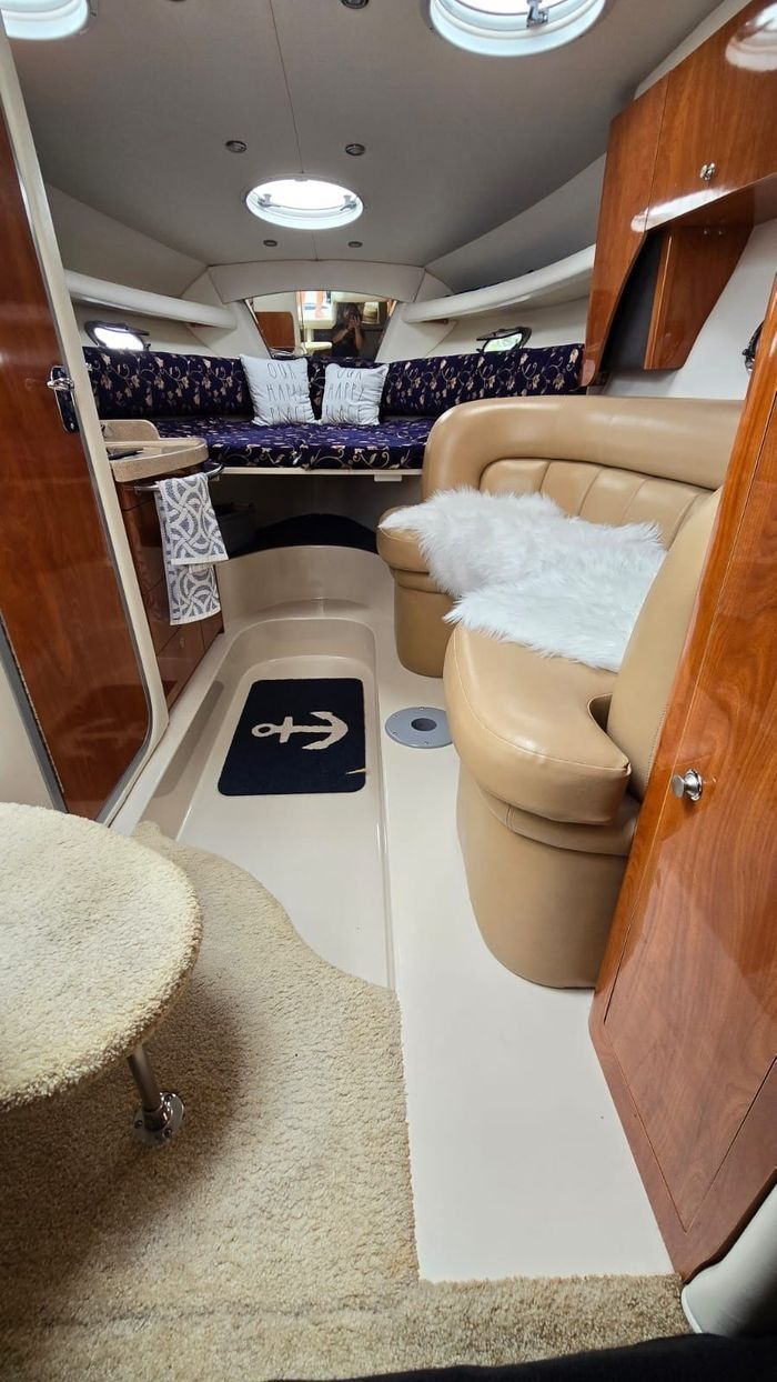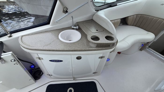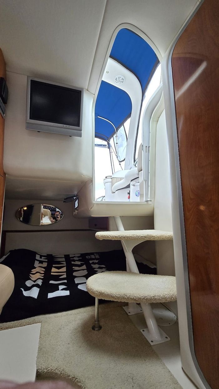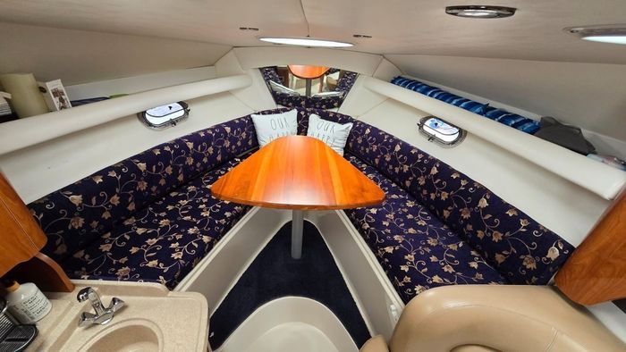 The 288 Vista is one of Four Winns’ most popular express cruisers, offering an exceptional balance of cockpit entertaining space and comfortable overnight accommodations. Measuring just over 28 feet with a wide beam, the layout features a spacious cockpit with wraparound seating, a wet bar, and easy access to the extended swim platform. Below deck, the cabin is intelligently designed with a forward V-berth, a convertible dinette, a well-appointed galley, an enclosed head with shower, and a generous mid-cabin berth—making it ideal for weekends on the water. Power is twin 5.0L Volvo Penta stern drive engines, providing reliable performance, strong cruising efficiency, and confident handling. The mid-2000s models, including 2005, benefited from refined interior finishes, improved ergonomics, and updated styling compared to earlier versions.