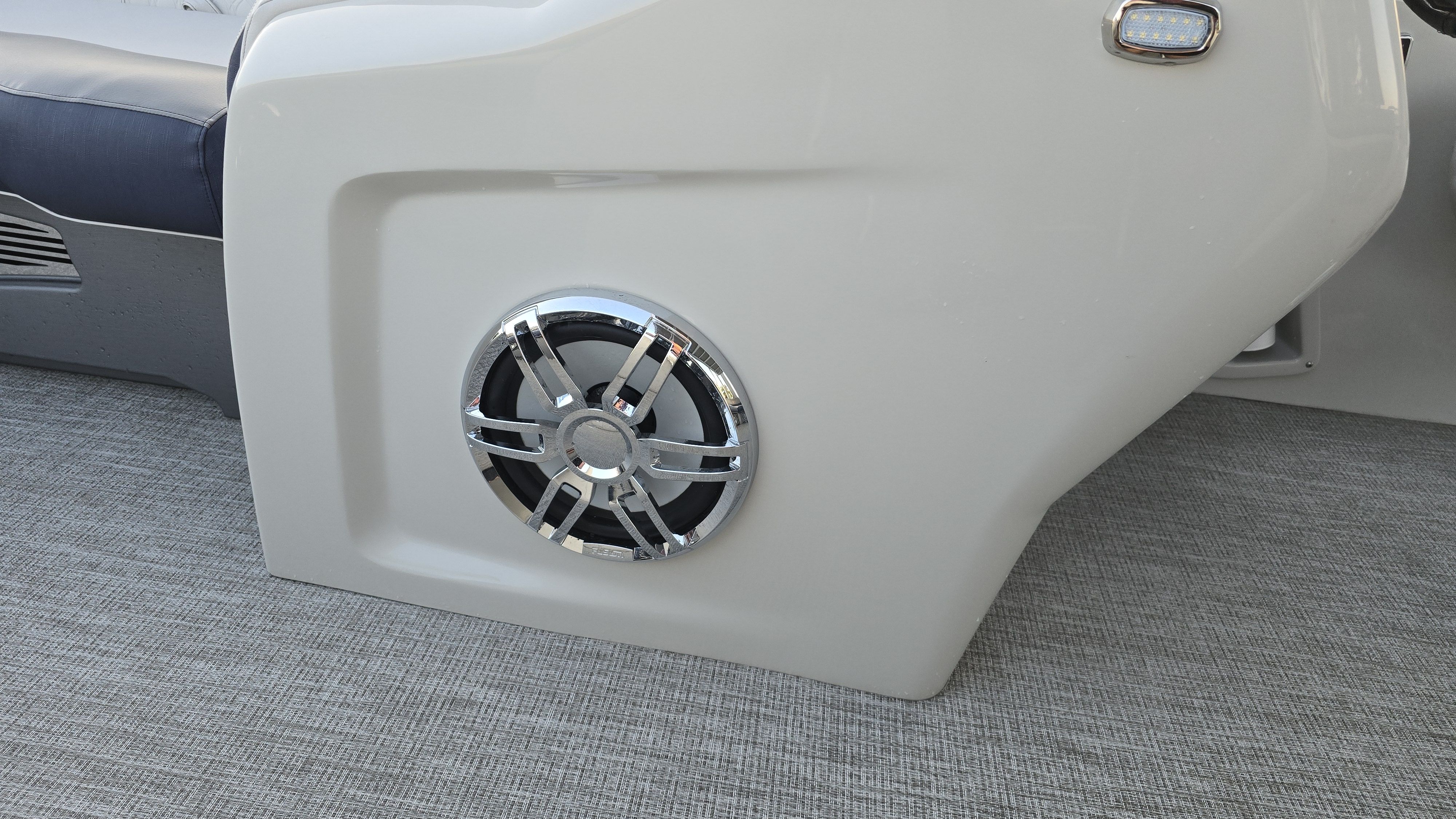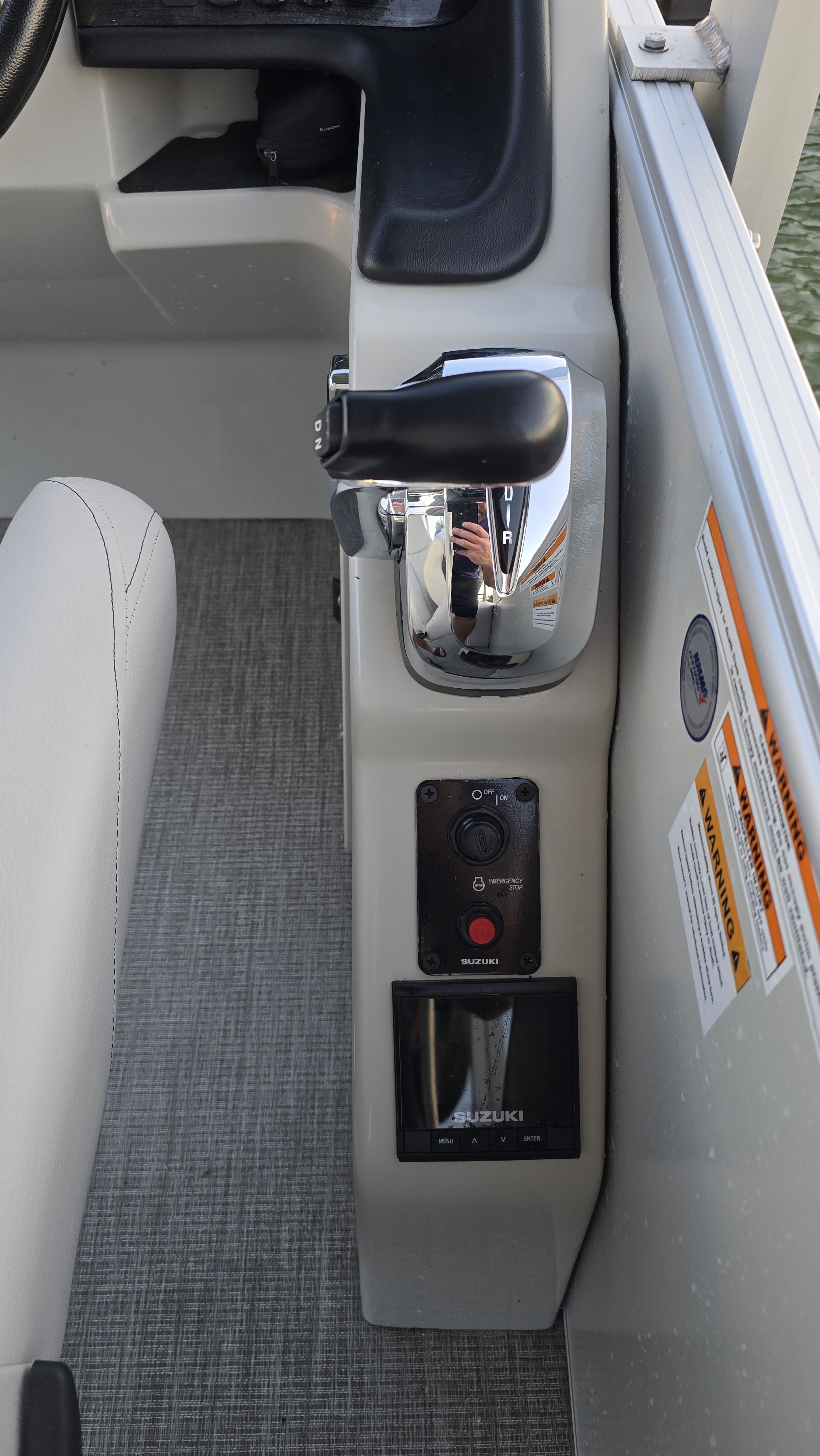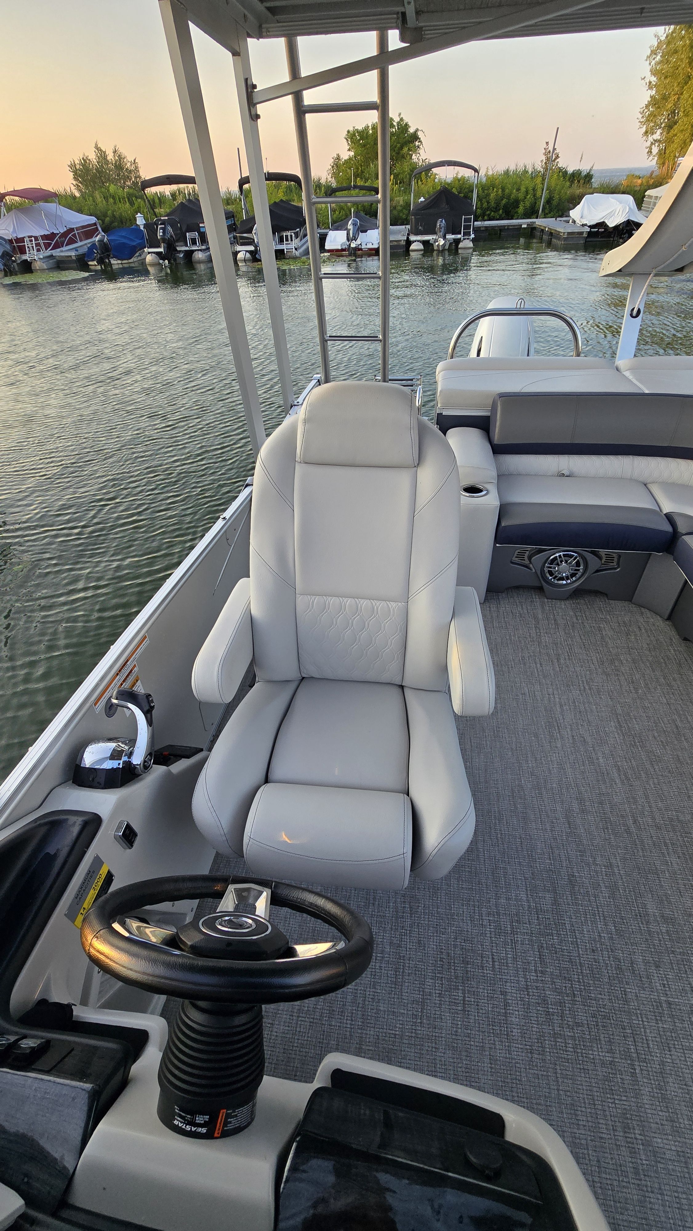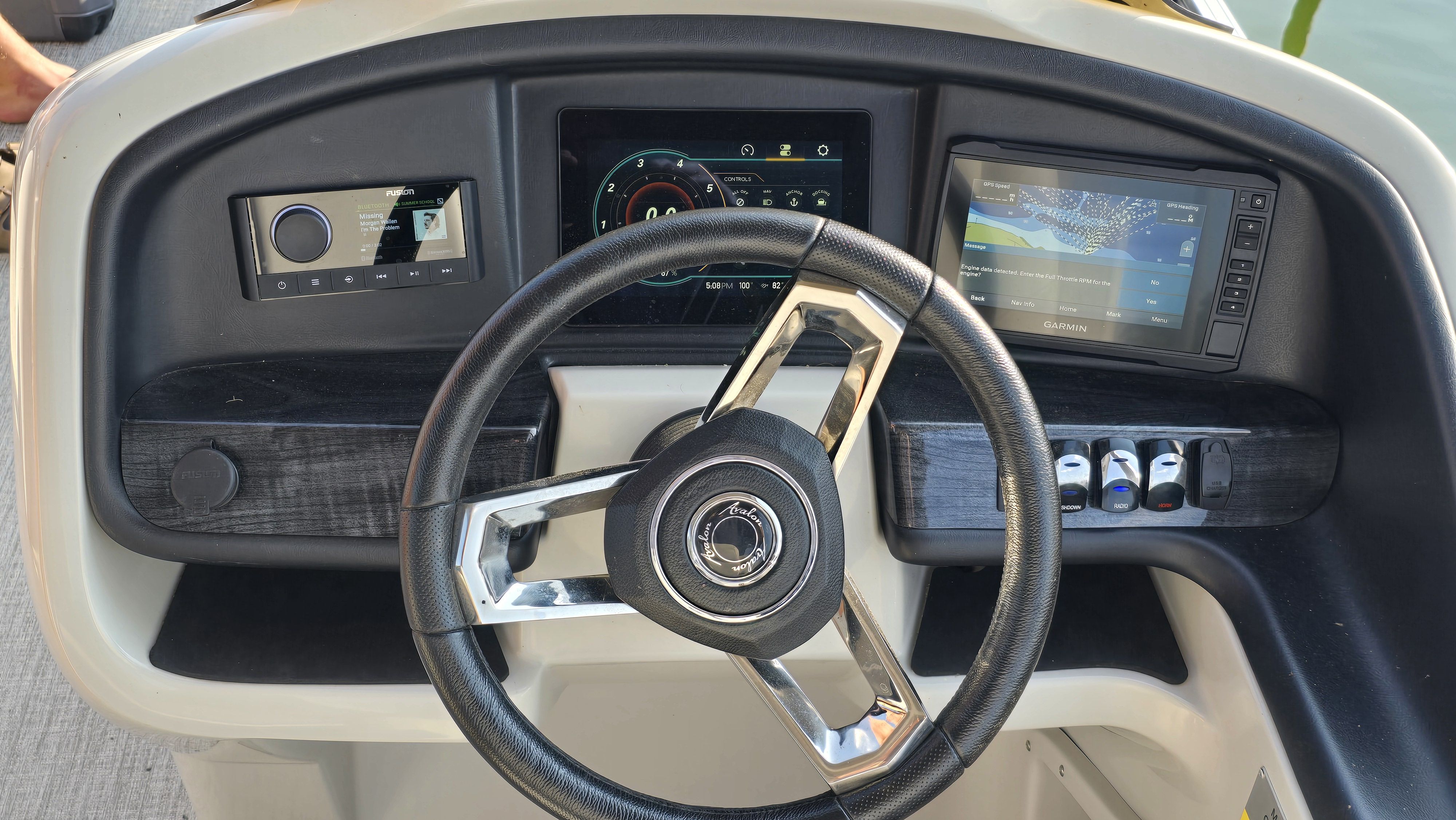 This particular double decker funship is practically brand new, loaded up from the factory, and is ready to be enjoyed all summer long! She is a one owner, fresh water vessel with only 25 hours on the 200hp Suzuki. Easily maneuverable thanks to the electric power assist steering, the 27" center tube system and the 6 high-performance lifting fins/strakes. Along with maneuverability, find your way safely with the built in Garmin 73CV chartplotter/GPS. Once you've arrived to your destination, crank up the high performance Fusion sound package, complete with speakers, amp and subwoofer, turn on your custom LED lighting throughout the entire boat, and enjoy the waterslide, top deck sun bathing/lounge pad, and all the space that this boat has to offer for entertaining! Fully equipped with upgraded interior, full coverage bimini, privacy station with curtain, and washdown system. She even comes with a mint condition Genesis tri-axle trailer, 2 anchors, 4 fenders, dock lines, and more. Come check this beauty out today and secure your summer oasis now for endless water fun!
