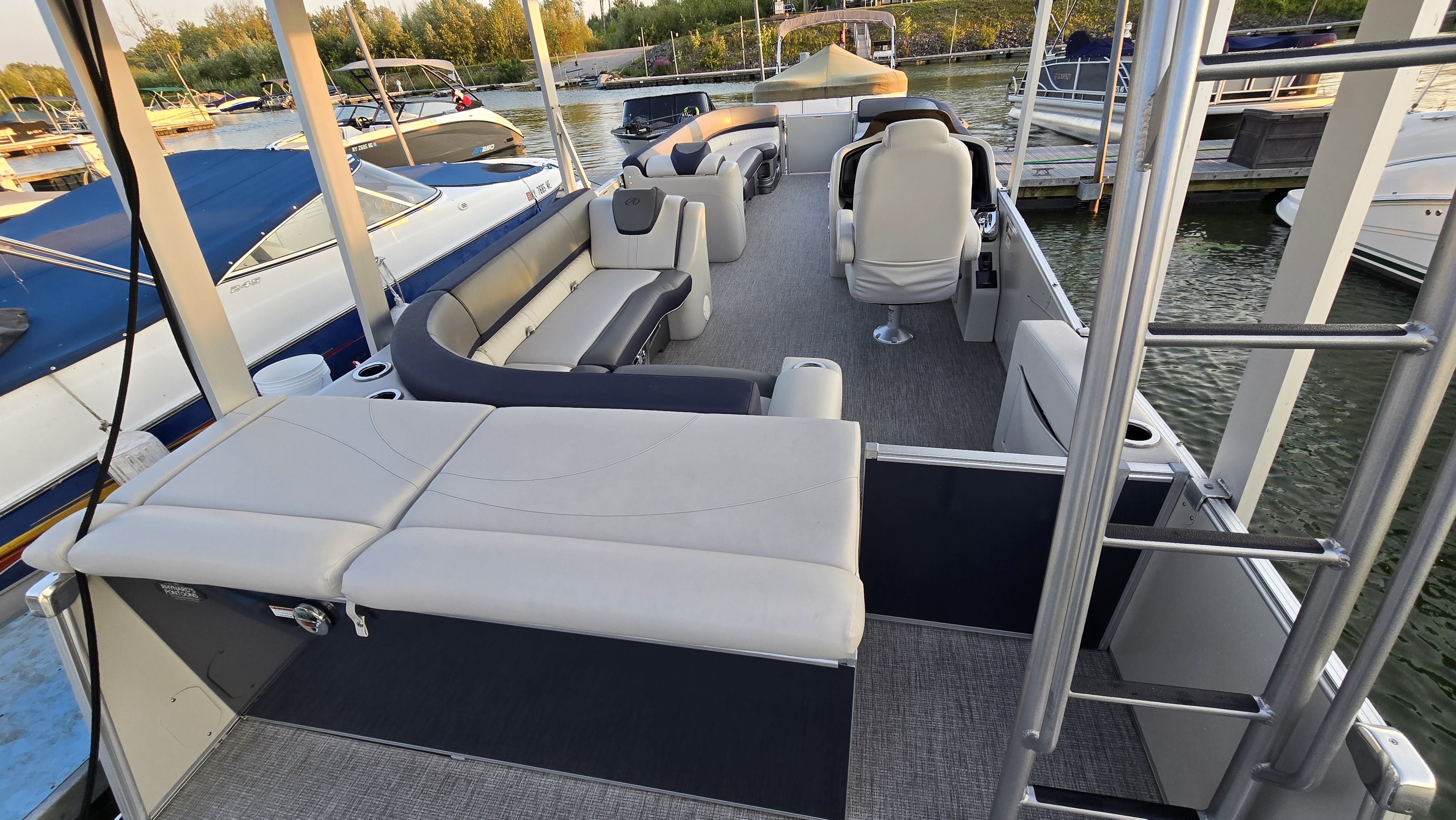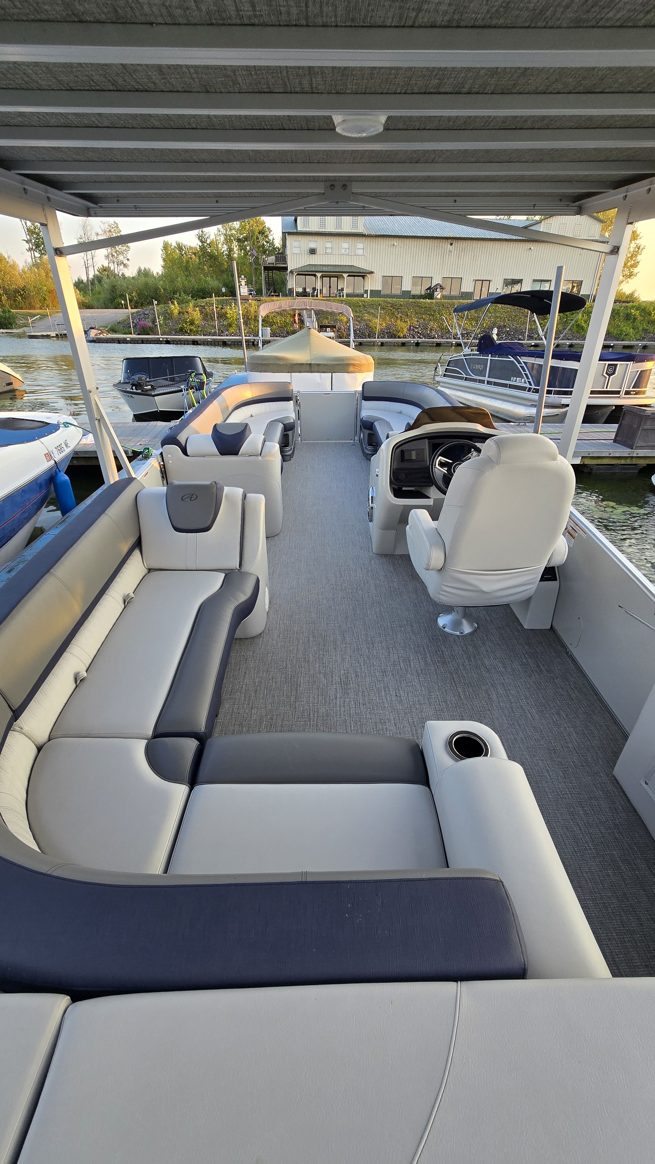 The Catalina model is a popular, versatile, and high-performance, yet accessible, luxury model. The Catalina is a mid-range pontoon boat from the Signature Collection, blending high-end master collection styling with customizable layouts. Available in 11 configurations, including Cruise, Rear Bench, and Funship, it offers luxurious, plush interiors with options for high-performance triple pontoons, providing a stable, fast, and stylish experience. The Funship collections are premium, double-decker pontoon boats designed as "water parks" with an upper-deck waterslide and a lower-level lounge. Typically 25–27 feet long, these versatile boats feature high-quality upholstery, Garmin navigation, and ample seating for day cruising and watersports.