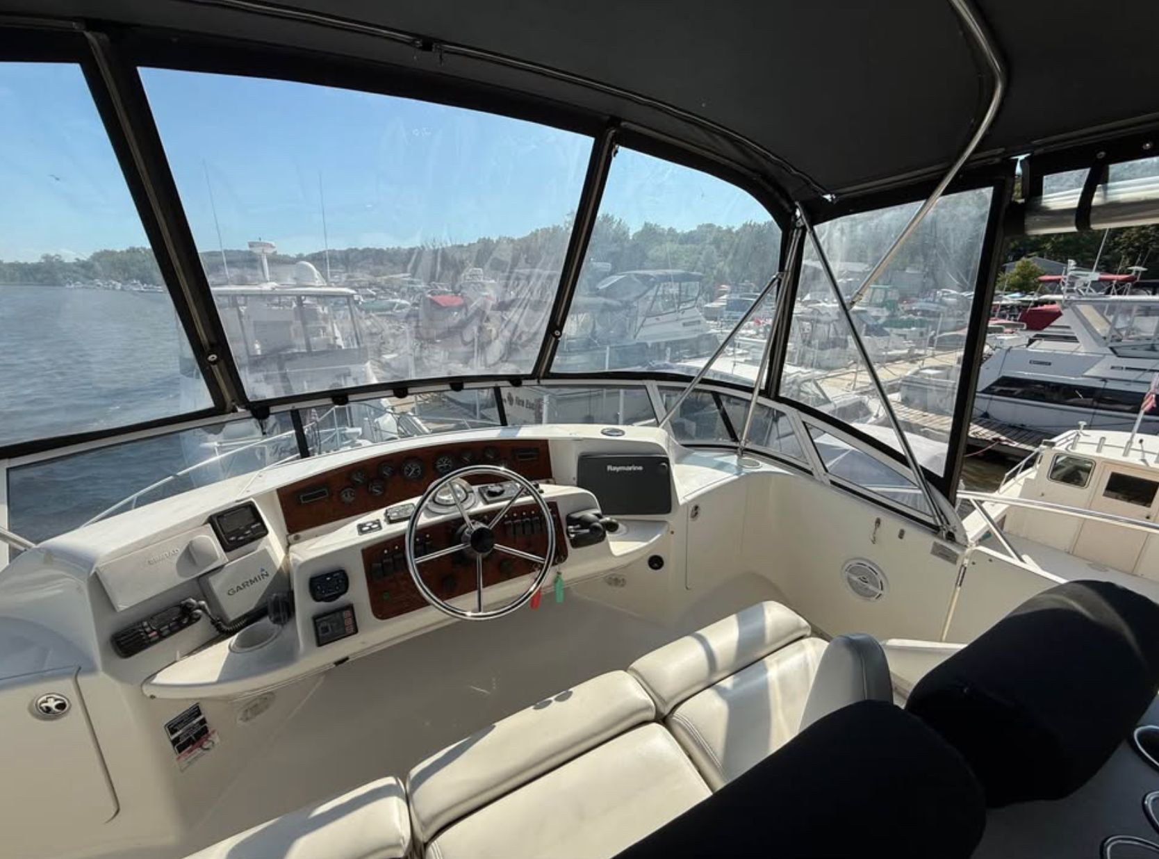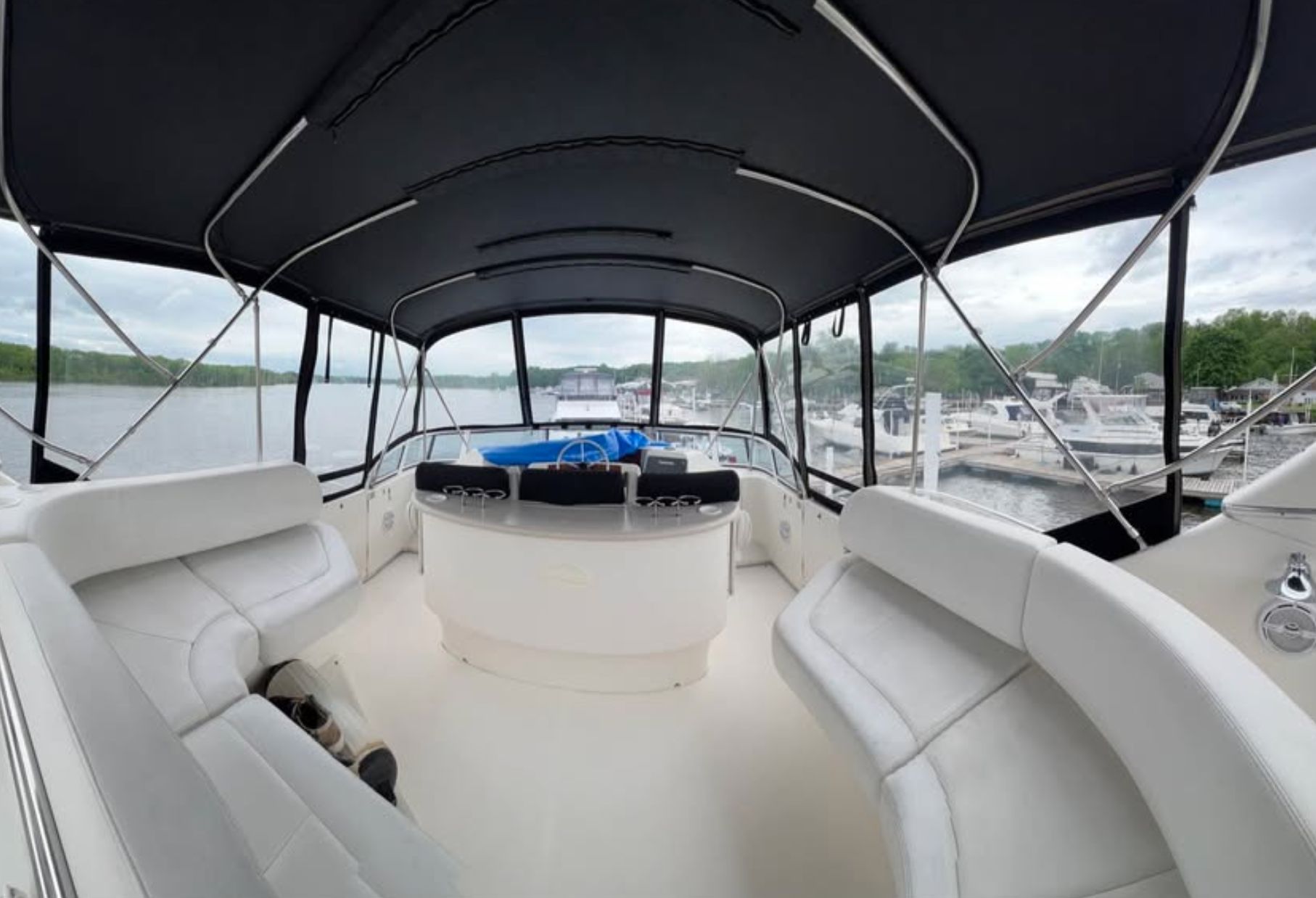 This particular 43 MY is no exception, and is turn-key and ready to be enjoyed this summer! Very well maintained and full of upgrades and added features, she is sure to cover all the needs for a weekender getaway vessel, a liveaboard, or even a looper boat. Plenty of room for entertaining, both inside and out. Sleeps 6 very comfortably with the ability to host even more. Two private staterooms and two heads with separate shower stalls, along with a full galley and spacious salon make up the interior space. There are also (3) brand new Webasto air conditioning units (multi-zoned) to keep you nice and cool on those hot summer days. Once outside, you will find your beautiful covered and fully enclosed aft deck to be used as prime entertainment space. Venture up to the large flybridge, also fully enclosed, where there is even more seating for guests, as well as the helm and controls. You can even sunbathe or lounge out on the bow sunpads! The exterior space is protected by brand new SeaDek flooring. On the stern you will find a Freedom Lift for your tender or dingy storage. This gorgeous and well appointed yacht is powered by the wildly popular and highly sought after TAMD 75 diesels, easily controlled and maneuvered by Yacht Controller. The less than 2 year old Yacht Controller has a bow thruster as well as a simulated stern thruster via joystick control. You will look like an absolute pro around the docks. Yacht Controller is still under warranty and has all receipts from installation. The engines and house effortlessly power right up as well, thanks to brand new batteries throughout the entire vessel. 316 stainless mixing elbows have been upgraded on both turbos and both turbos have been inspected. And on top of all of this, she has already had her 1000 hour service completed…the right way! Engines were pulled and tank dunked, and then put back together with every new o-ring available through Volvo and the professional service marine shop that did the work. New coolant was added, valves were adjusted, after coolers, heat exchangers, and transmissions were all inspected and serviced as needed. Finally, both engines were pressure tested before getting re-installed. She runs like a top and is ready for her next adventure…don't let this one get away!