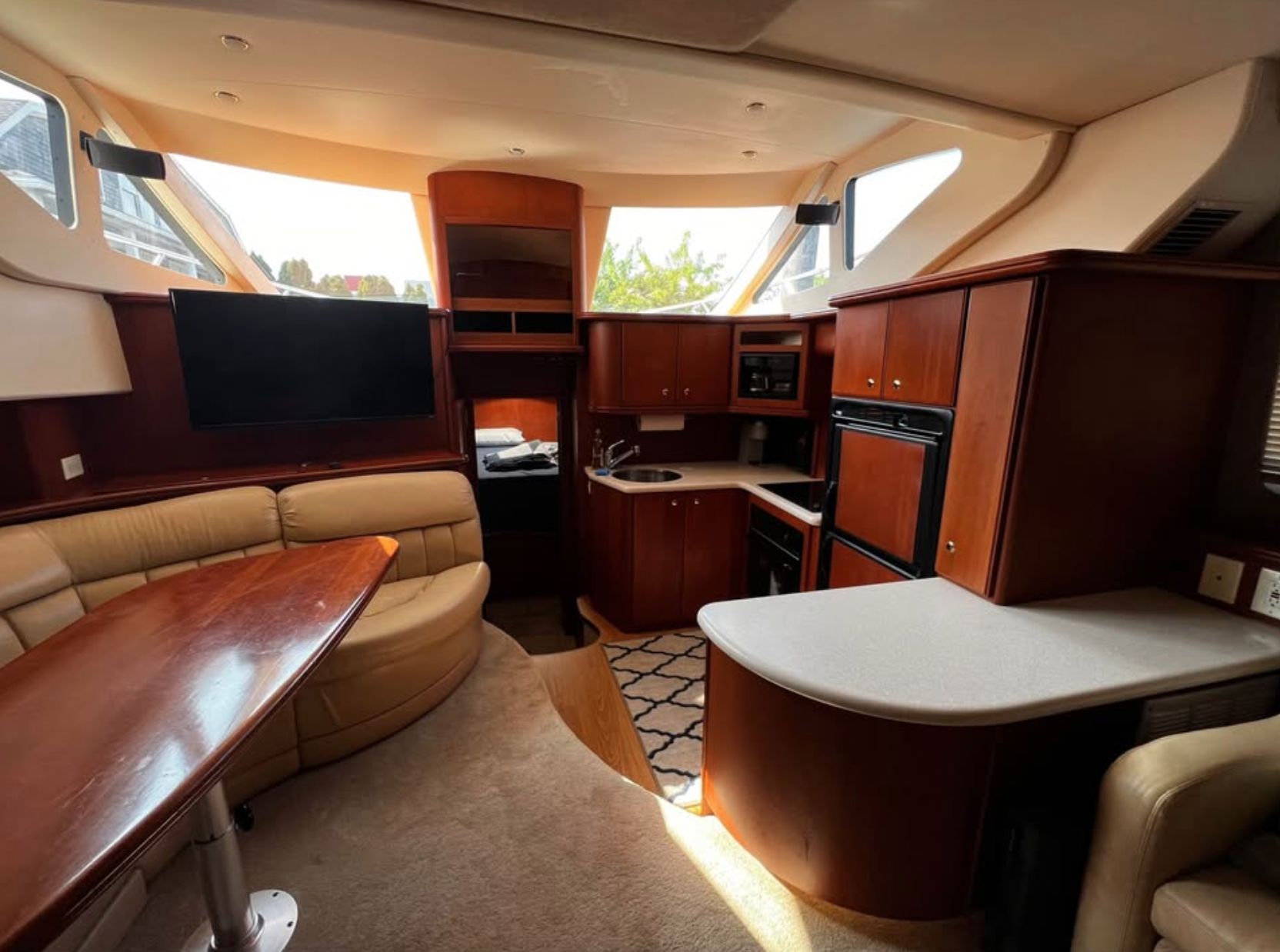The Silverton 43 Motor Yacht, produced roughly from 2001 to 2007, is widely considered one of the company's best, most successful, and iconic designs. It is frequently highlighted for maximizing interior volume and livability, making it a standout in its class for liveaboards and family cruisers. It boasts a cavernous interior, with a full-beam salon and high ceilings, making it feel much larger than 43 feet. The aft deck typically features a hardtop with a wet bar, ice maker, and a molded staircase for easy access to the swim platform, enhancing outdoor living. Instead of traditional, narrow side decks, the innovative SideWalk system uses molded steps from the flybridge to the bow, making movement safe and easy while increasing interior width. And performance wise, it is built on a modified-V hull, offering a stable, dry ride, with most models powered by twin Volvo or Cummins diesels, providing a comfortable cruise.