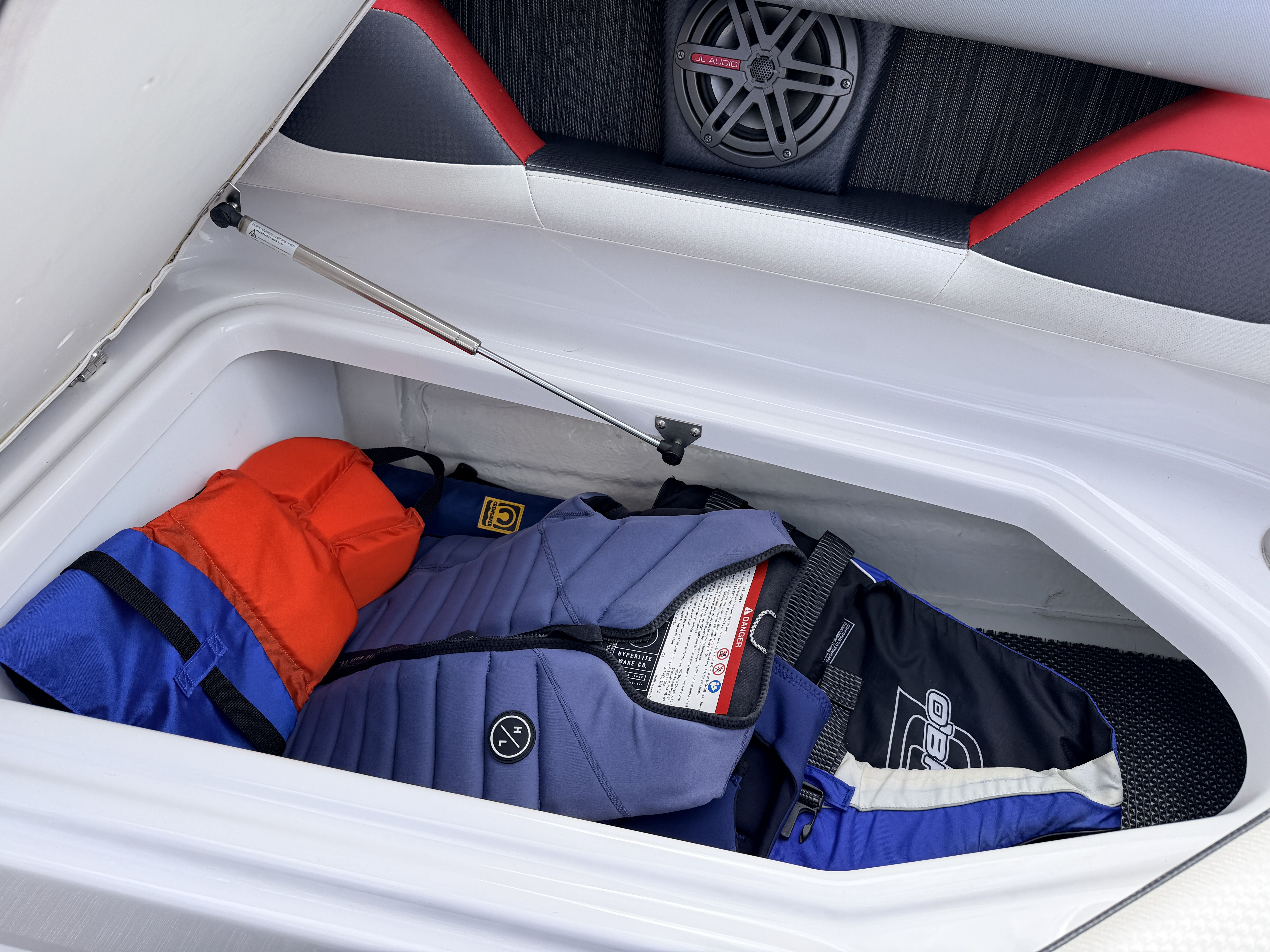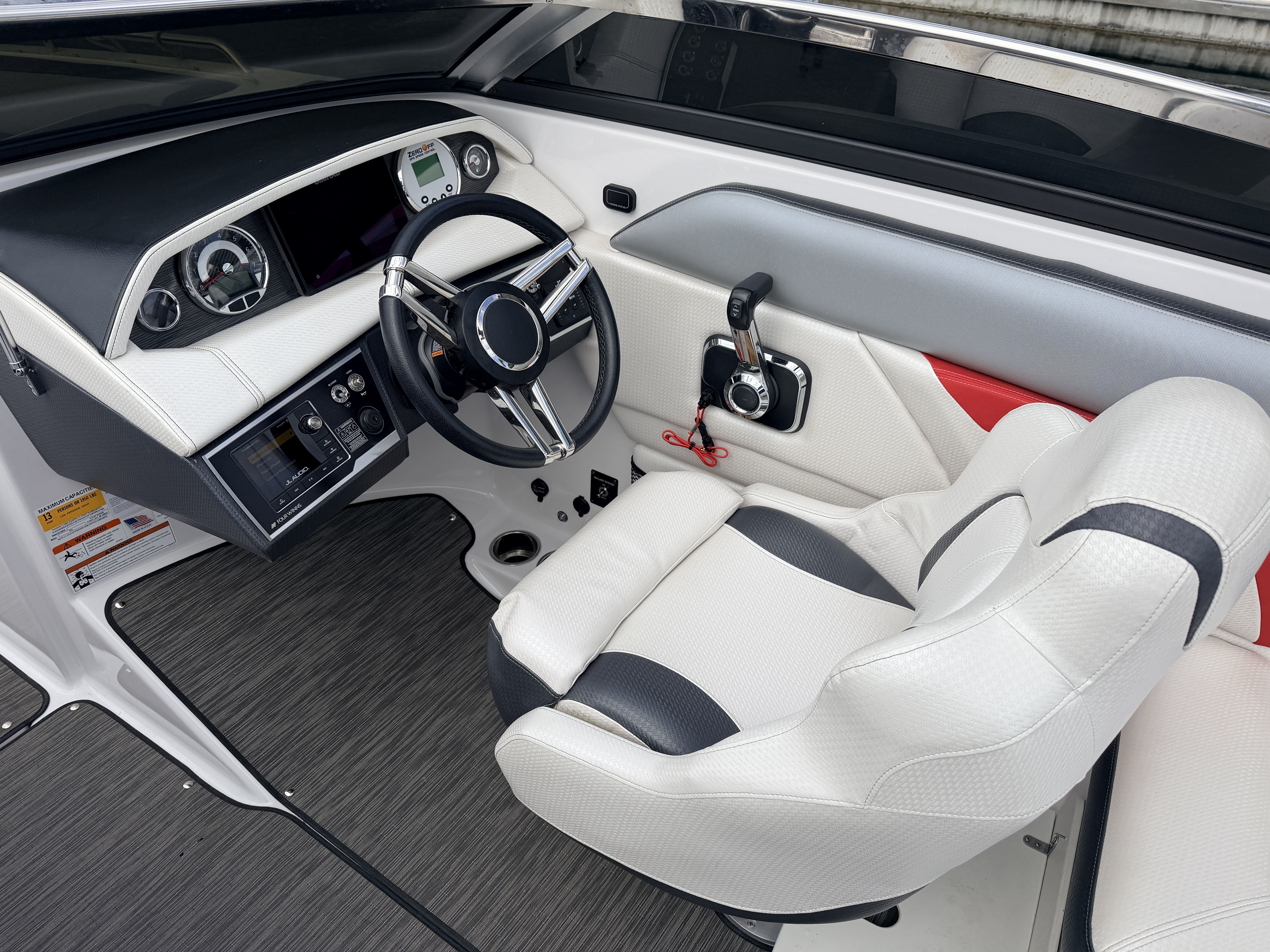 • Upgraded JL stereo system with cockpit, bow & rear speakers for incredible on-water sound