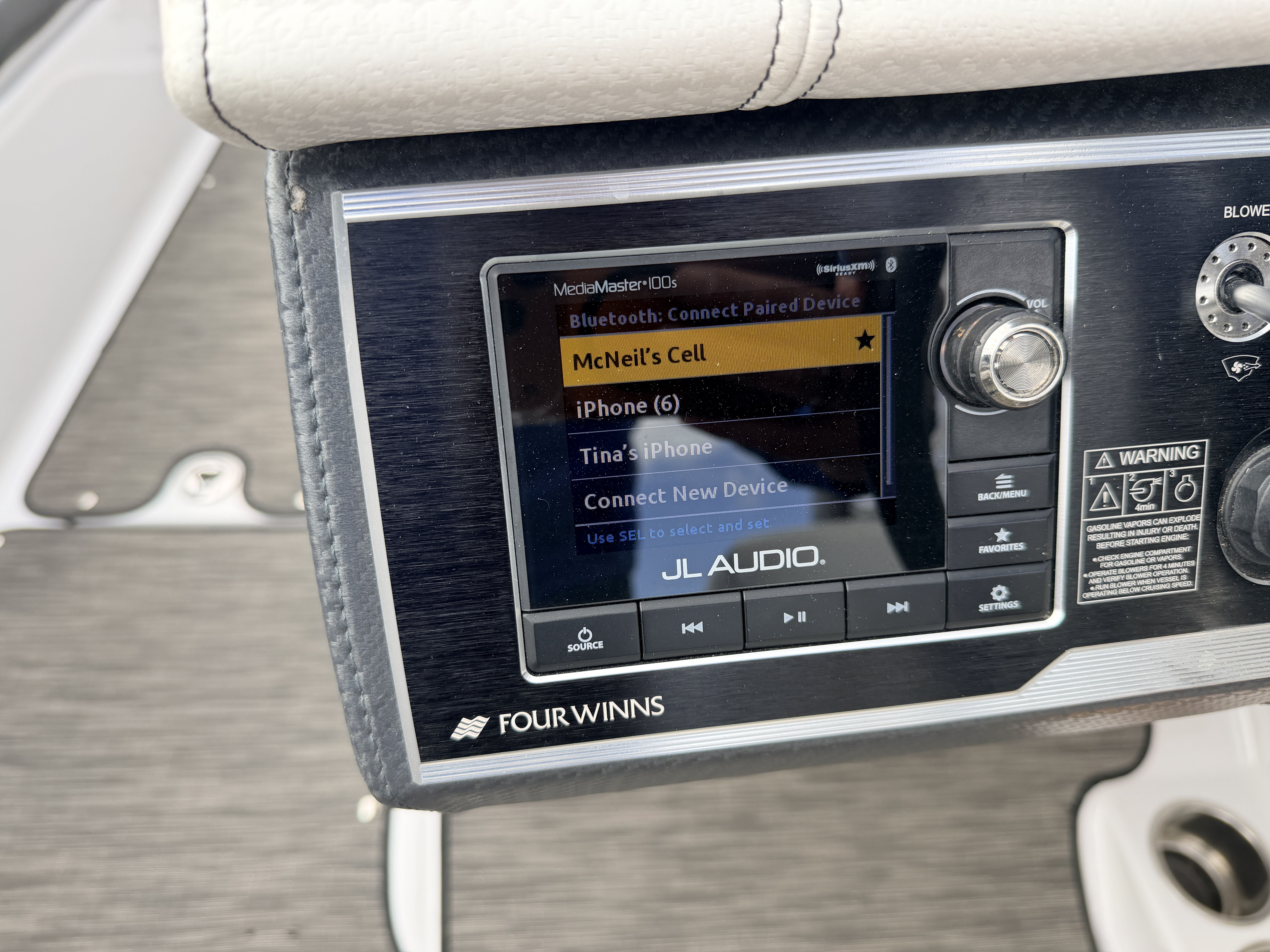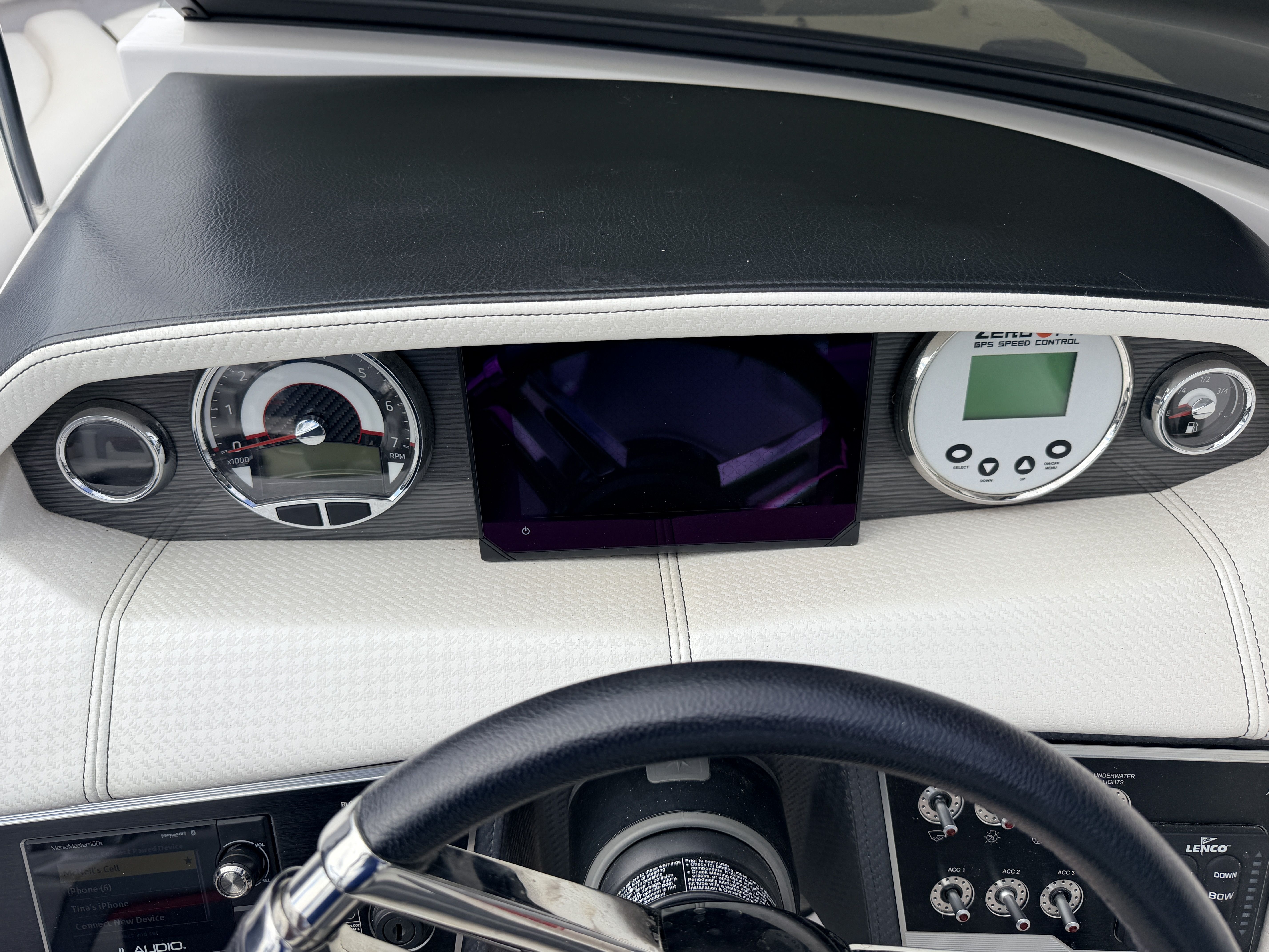 Upgraded JL stereo system with cockpit, bow & rear speakers for incredible on-water sound
