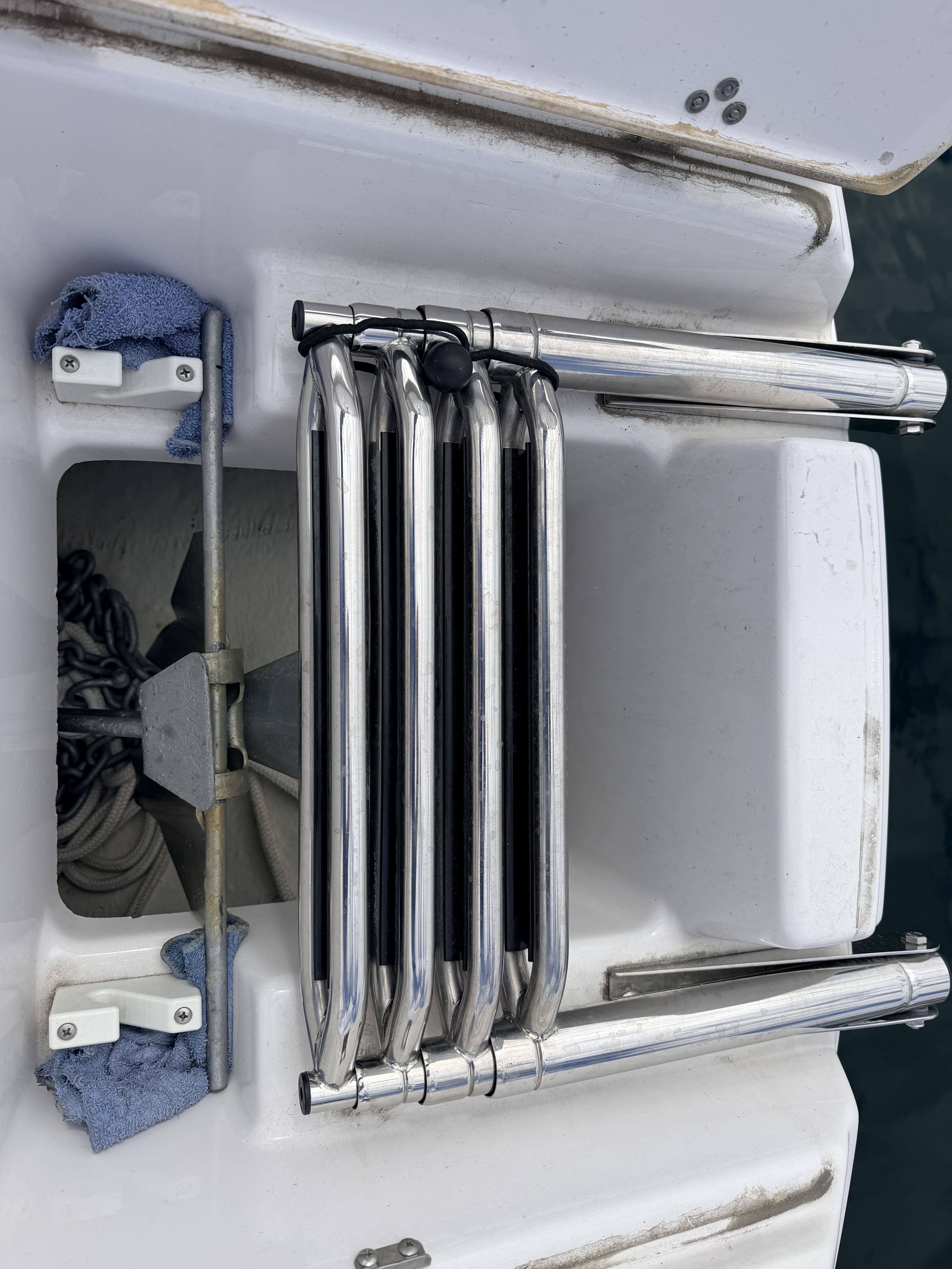 Swim platform, ladder, angled, deep-reach, hidden with wide step-pads