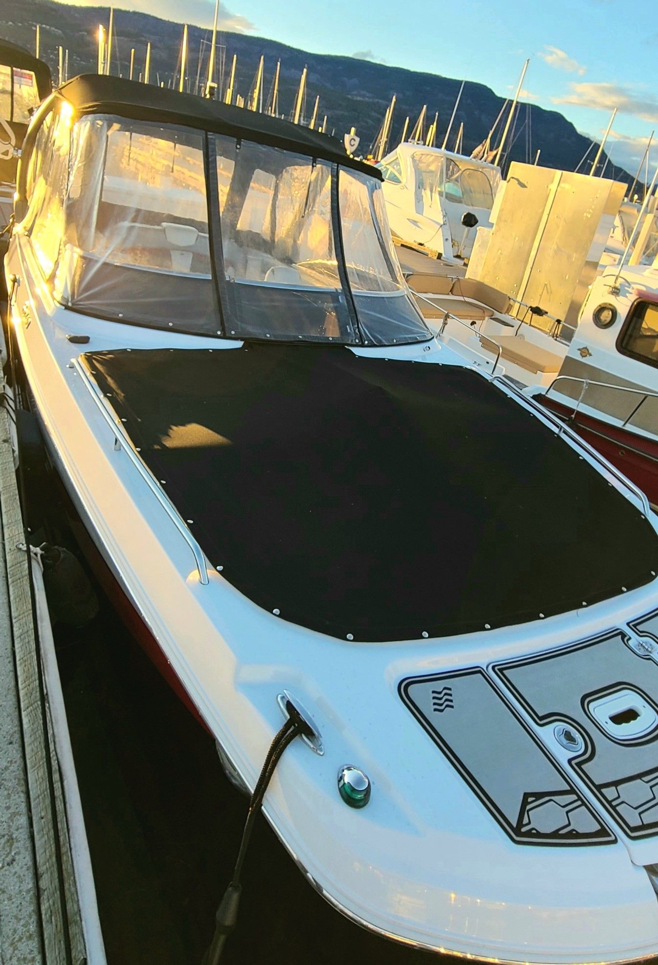 • Full enclosure + bimini top for all-weather comfort