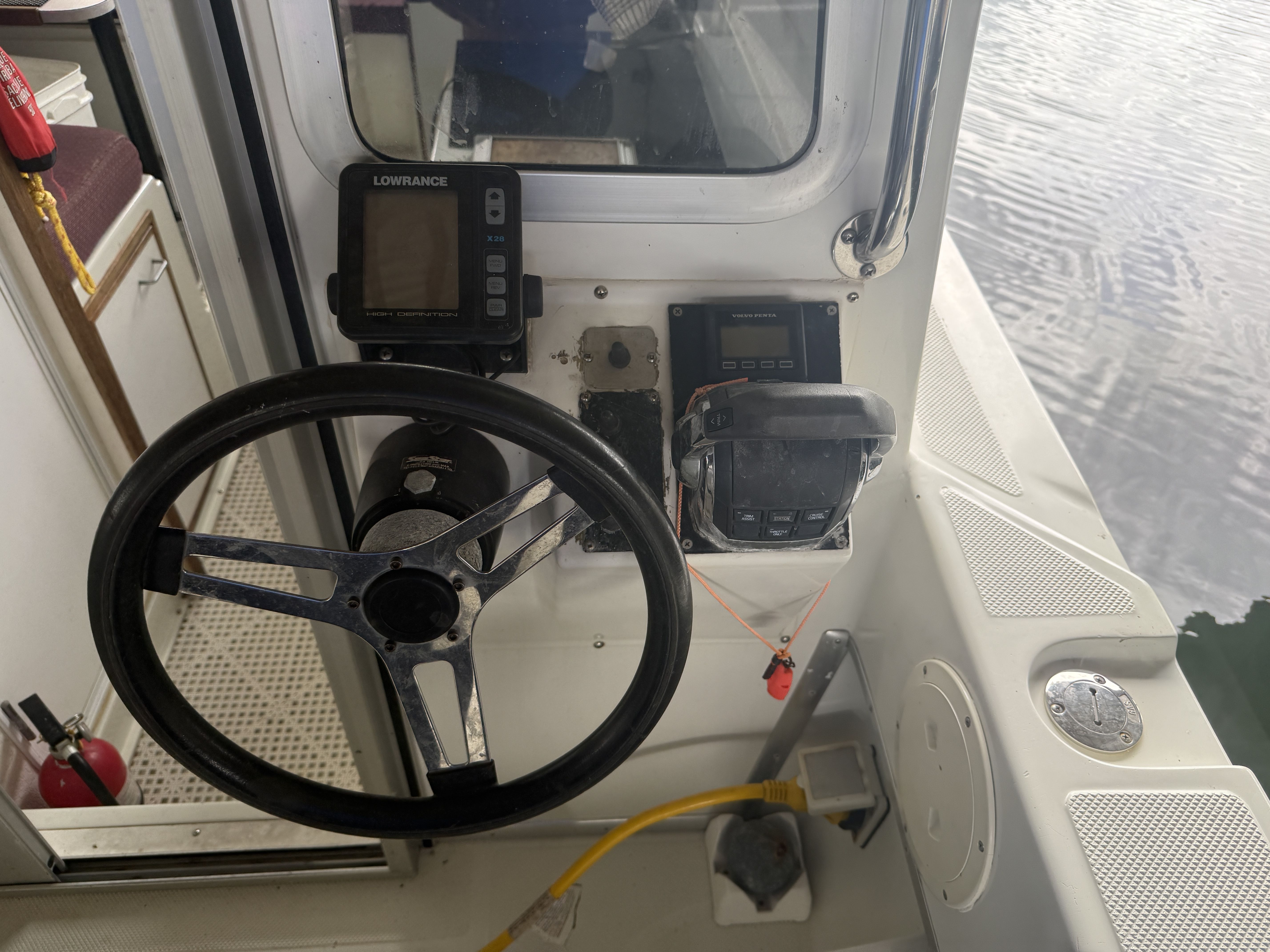 This particular vessel stands out with a significant upgrade—repowered with a 2013 Volvo Penta D4-260 diesel. This modern common-rail diesel provides excellent fuel efficiency, strong torque, and dependable cruising performance, making it an ideal setup for extended coastal runs or offshore fishing.