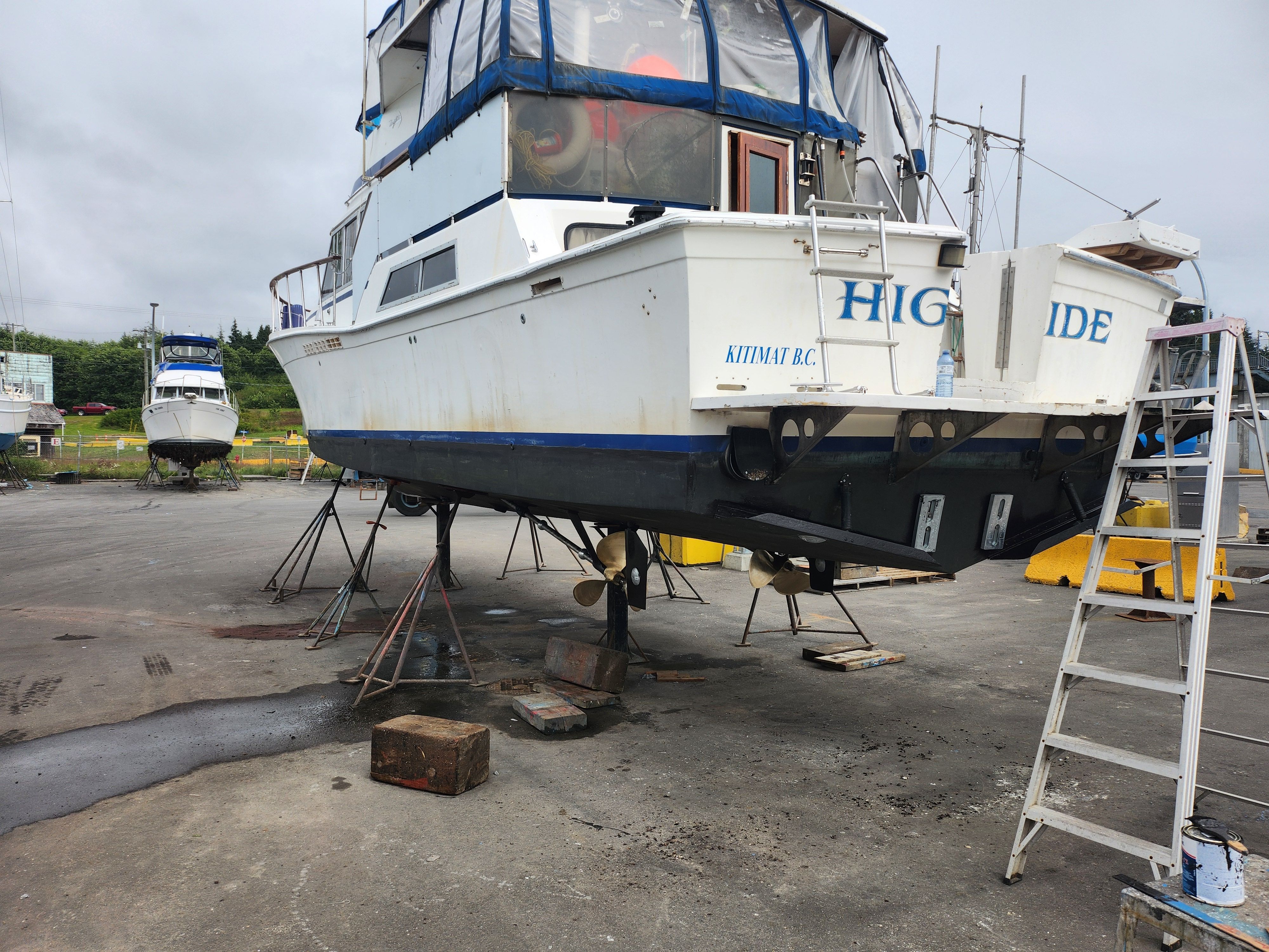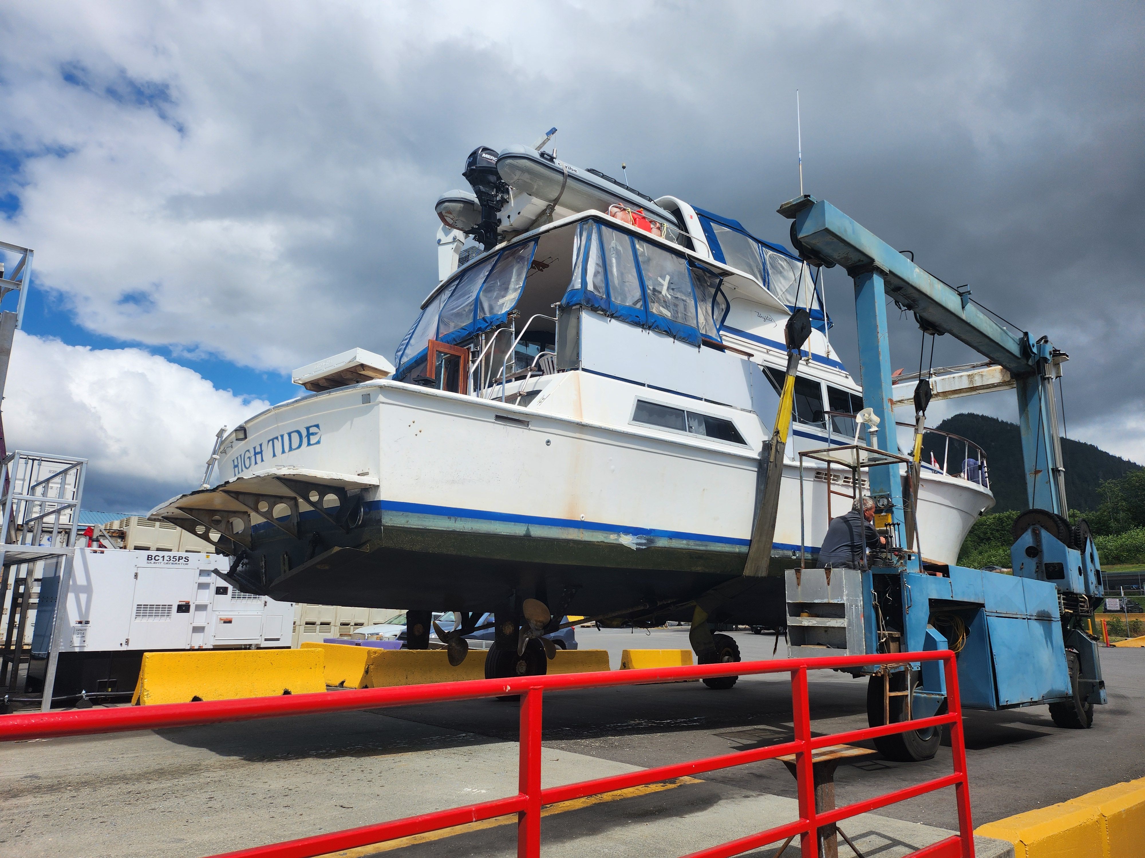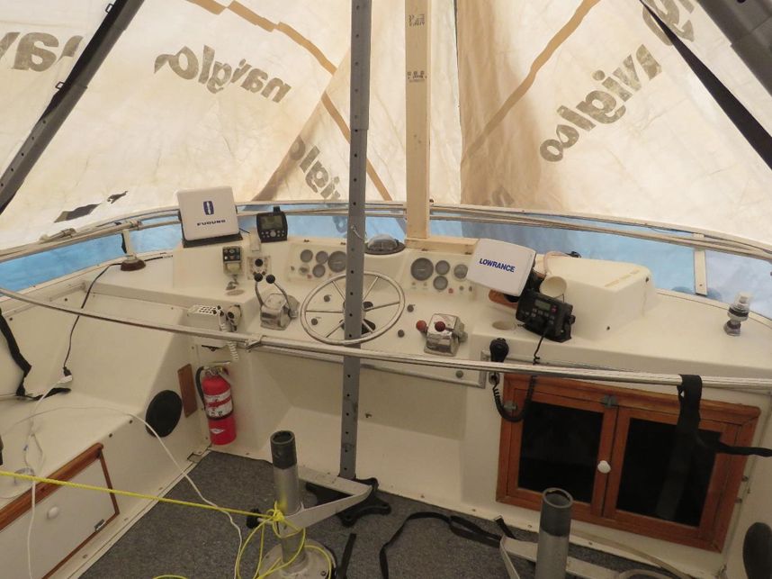 Full canvas bridge enclosure Full aft enclosure Electric davit crane with cable remote Large open cockpit Swim platform with transom gate access Forfjord anchor with chain Lowfrans electric windlass with remote Boarding ladder Tender: Caribe rigid hull center console Outboard: 20 HP Mercury 4 stroke, electric start Fishing gear onboard if desired Two Scotty electric downriggers Scotty crab / prawn puller Rule navigation lights Electric horn and whistle