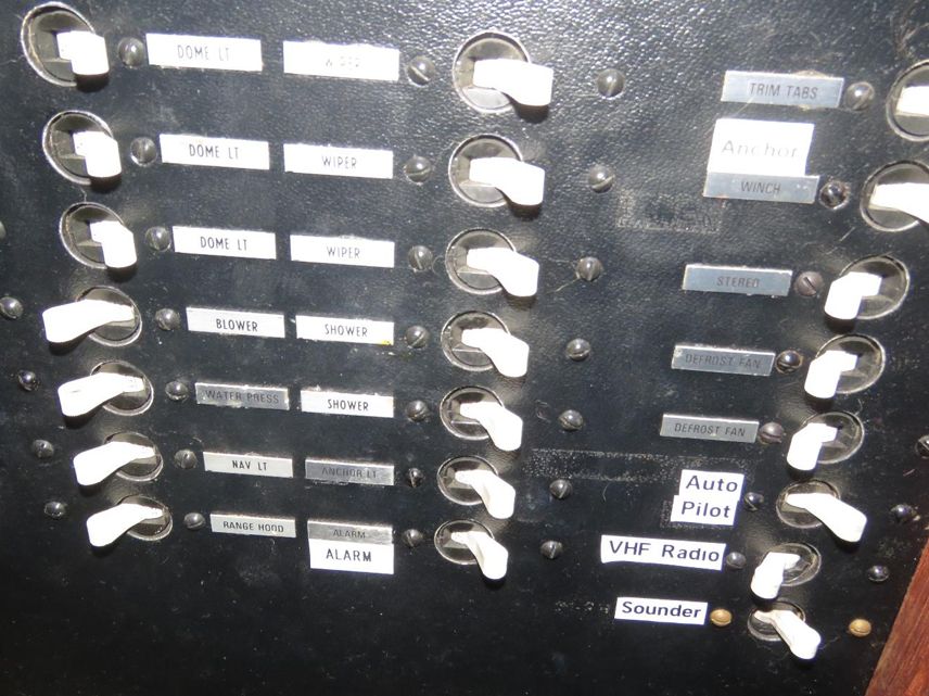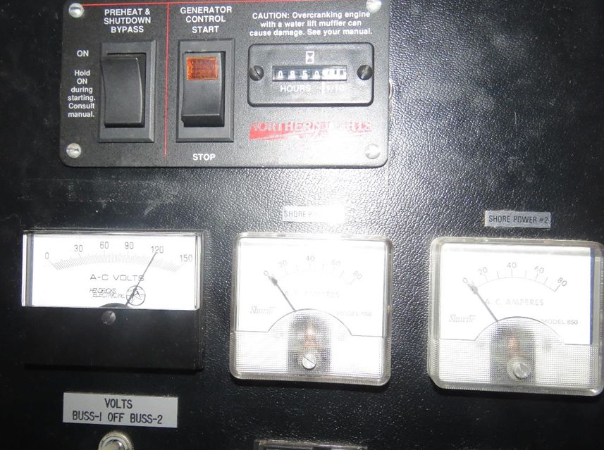 Twin Detroit 6-71 turbo diesels Twin Disc gears Honda EU3000i 3.0 kW portable generator Autopilot Garmin GPS 152 Lowrance HDS7 Raytheon V800 Furuno NavNet radar Icom IC-M502 VHF SEA156 VHF Handheld VHF Dual station hydraulic steering Dual station controls Hydraulic trim tabs 12 VDC and 120 VAC ship’s power Shore power Six 6V house batteries, one 8D and one 4D start batteries True Charge 46 amp battery charger Eliminator 3000 watt inverter Electric bilge pump with float switch